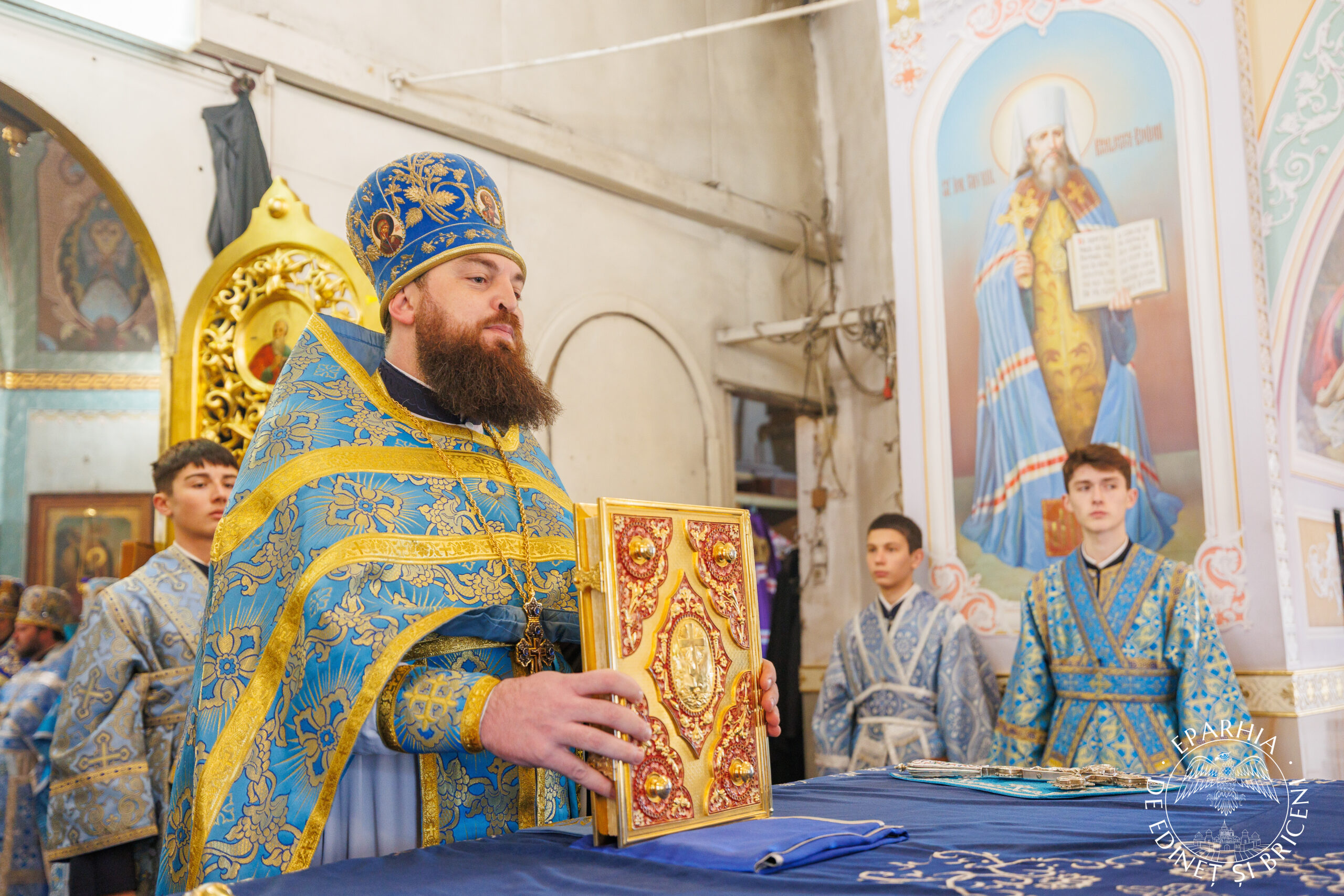 Împreună cu un sobor de preoți și diaconi.