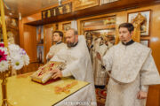 Sfânta Liturghie a fost oficiată cu binecuvântarea Întâistătătorului Bisericii Ortodoxe din Moldova, ÎPS Mitropolit Vladimir, de către vicarul mitropolitan, Preasfințitul Siluan, Episcop de Orhei împreună cu un sobor de preoți și diaconi.