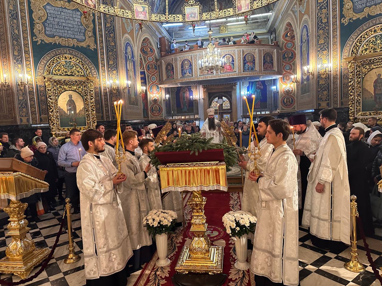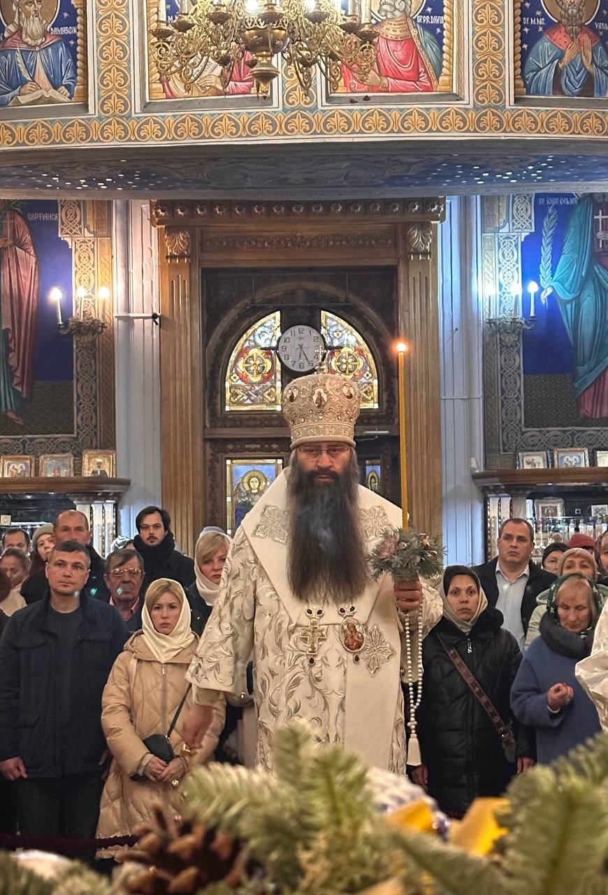 Cu binecuvântarea Înaltpreasfințitul Mitropolit Vladimir, în mijlocul credincioșilor prezenţi în număr mare la Catedrala Mitropolitană „Nașterea Domnului” şi înconjurat de un sobor de preoţi, vicarul Mitropoliei, Episcopul Filaret de Căpriana a săvârşit slujba privegherii prilejuită de marea sărbătoare a Naşterii Domnului nostru Iisus Hristos.