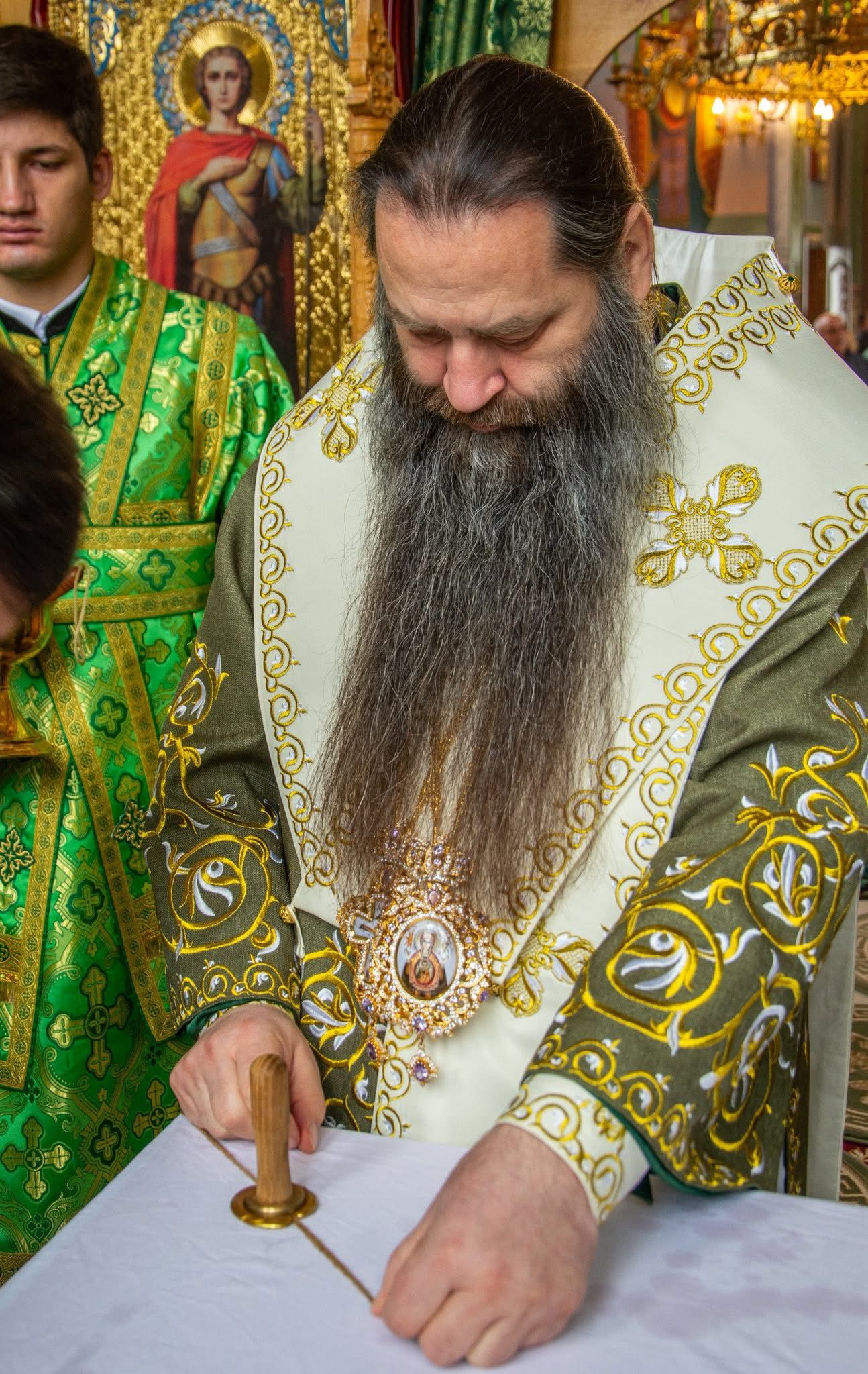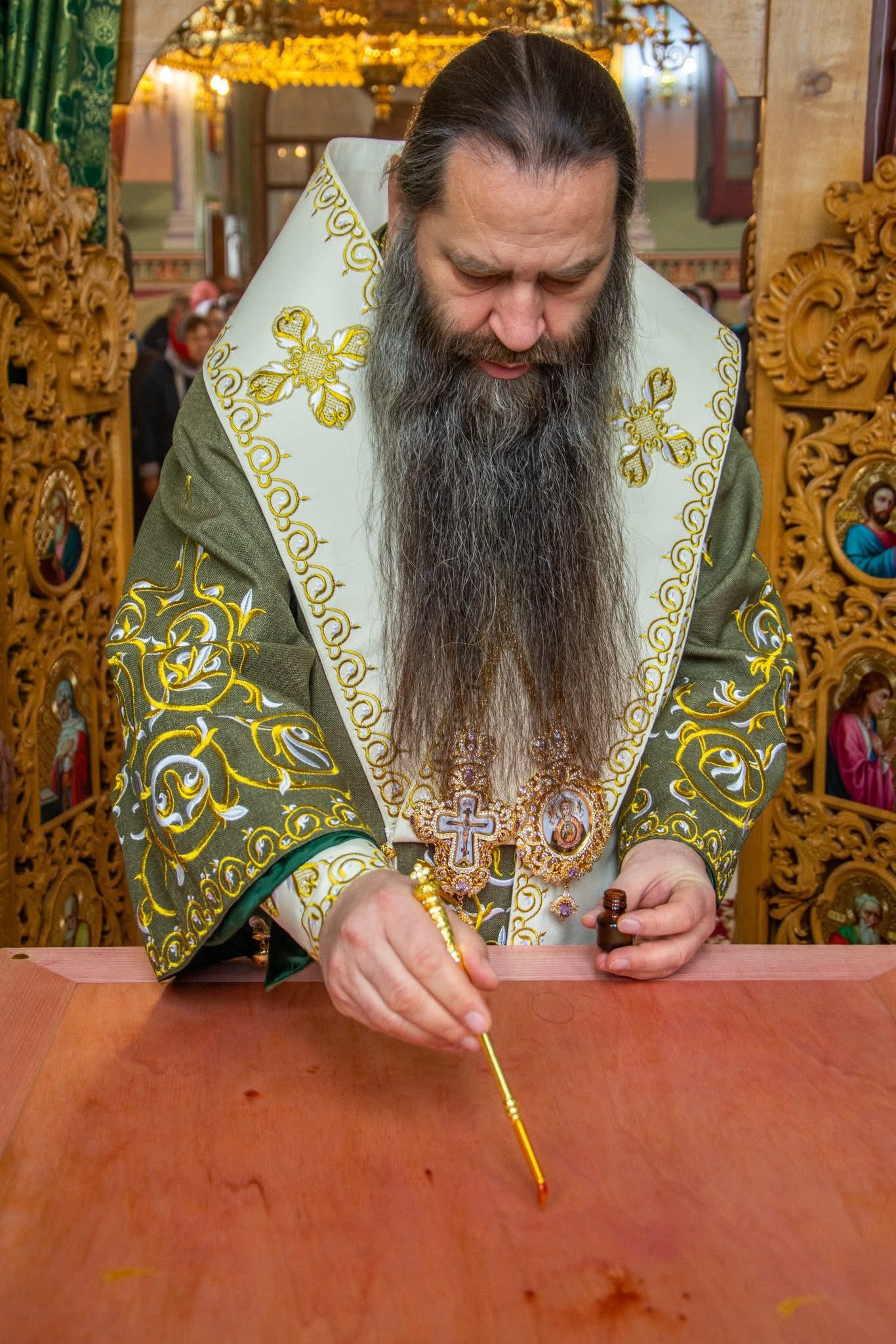 În cadrul Sfintei Liturghii, Episcopul Filaret a transmis părintelui-paroh distincția oferită de către Înaltpreasfințitul Mitropolit Vladimir – dreptul de a purta paliță.