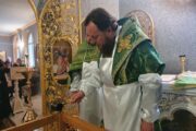 Ierarhul Sorocii împreună cu soborul preoțesc au oficiat slujba sfințirii Prestolului, apoi a fost săvârșită Sfânta Liturghie.
