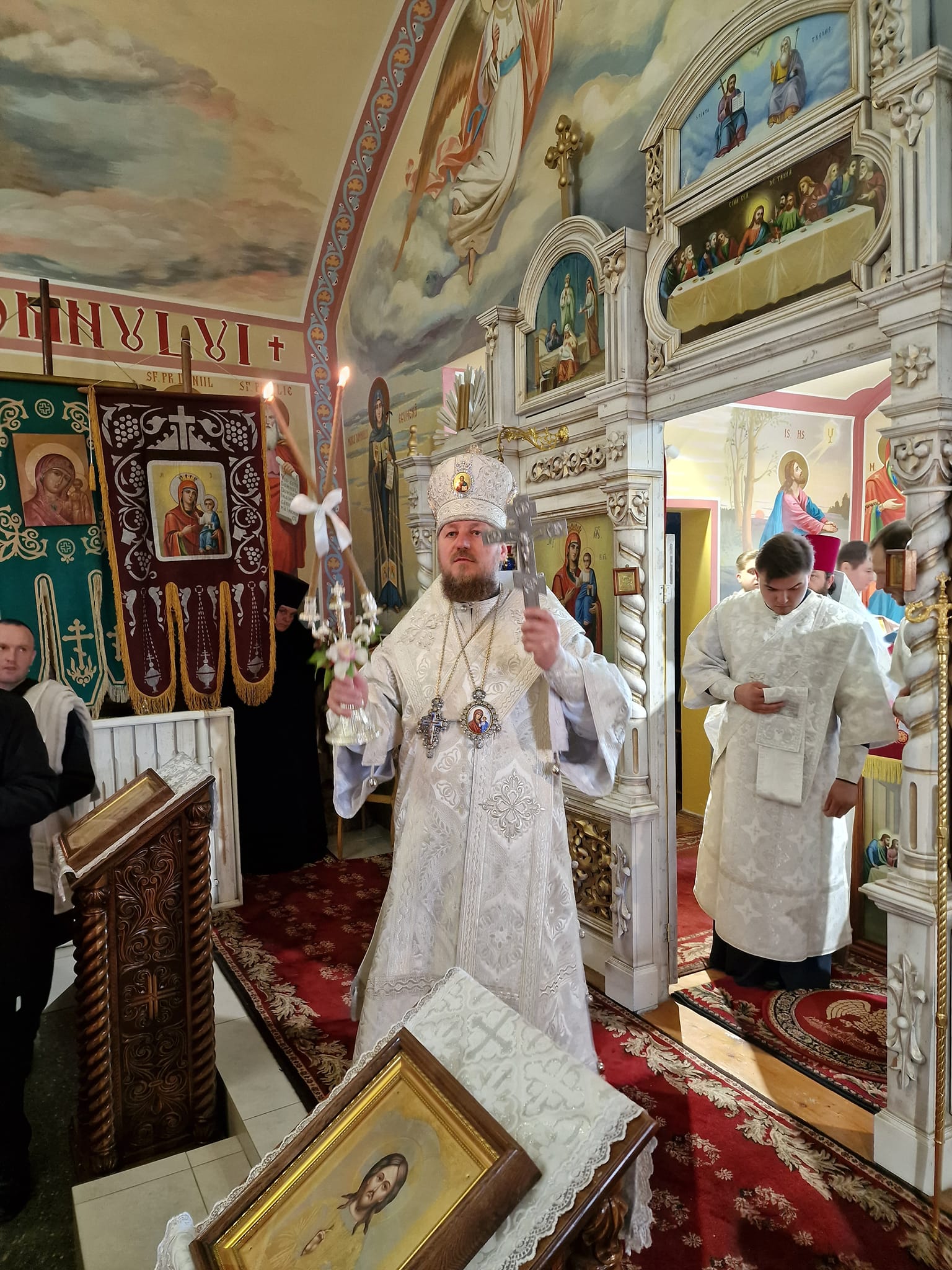 După Liturghie, episcopul Ioan a săvârșit rânduiala înmormântării nou-adormitului Vasile Rotari, ctitor al bisericii „Învierea Domnului” de pe teritoriul cimitirului „Sf. Lazăr” Doina.