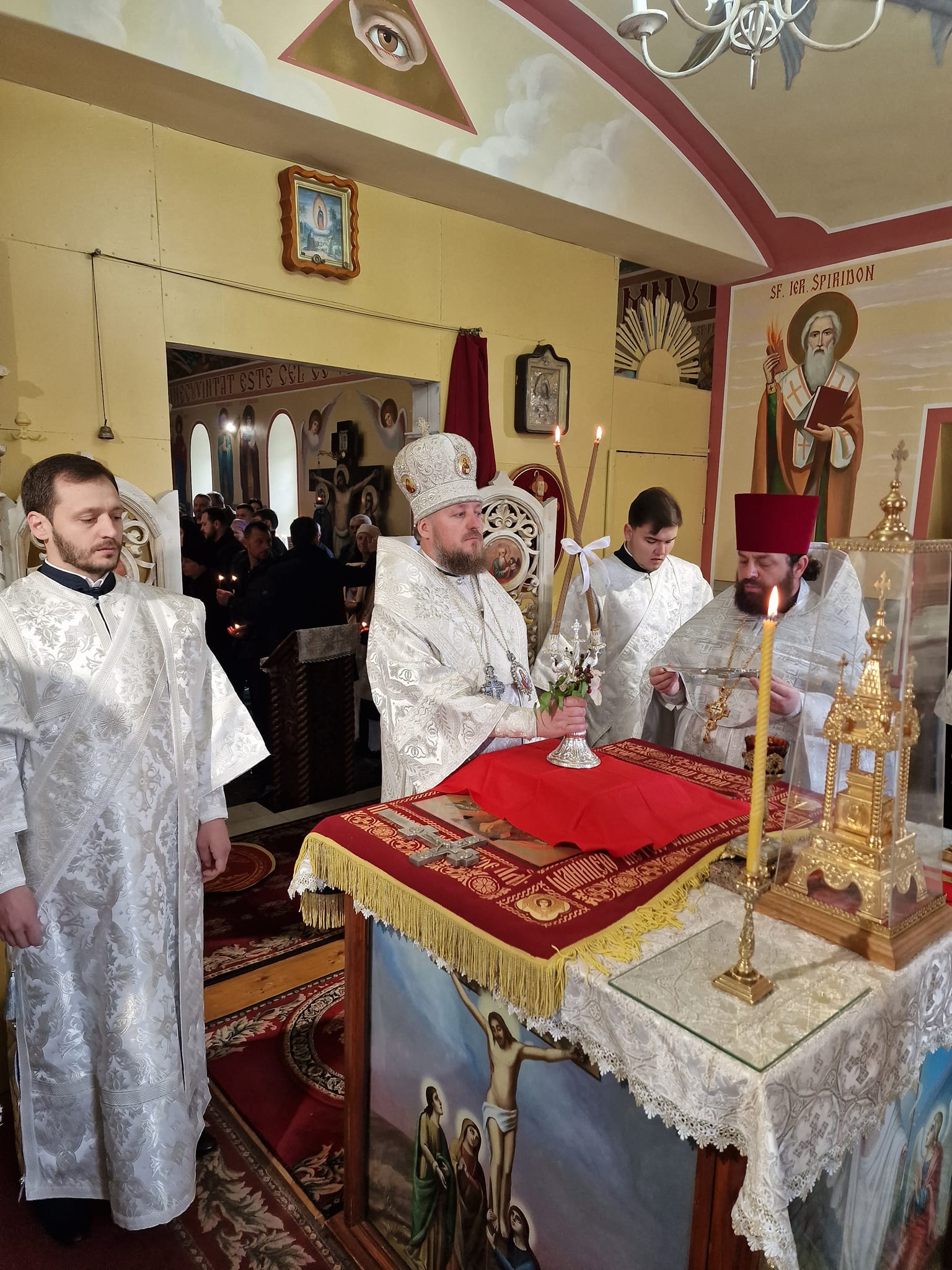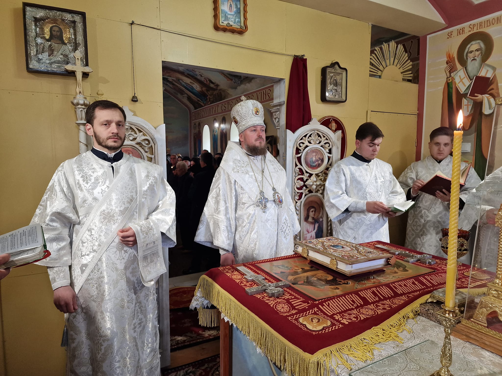 Ierarhului iau coliturghisit prot. mitr. Nicolae Tudoreanu, administratorul sfintei mănăstiri, clericii locașului sfânt și credincioșii veniți la rugăciune.