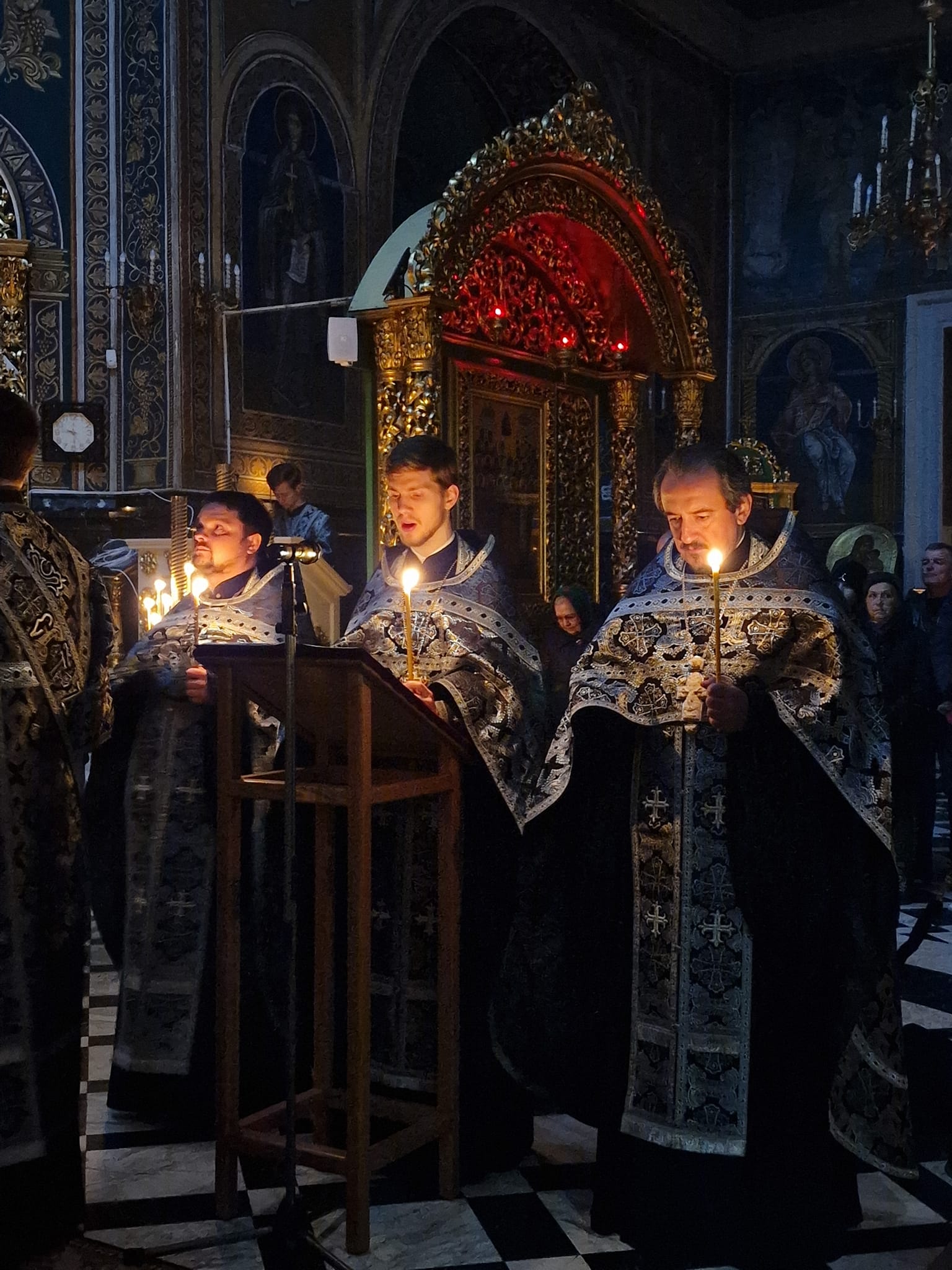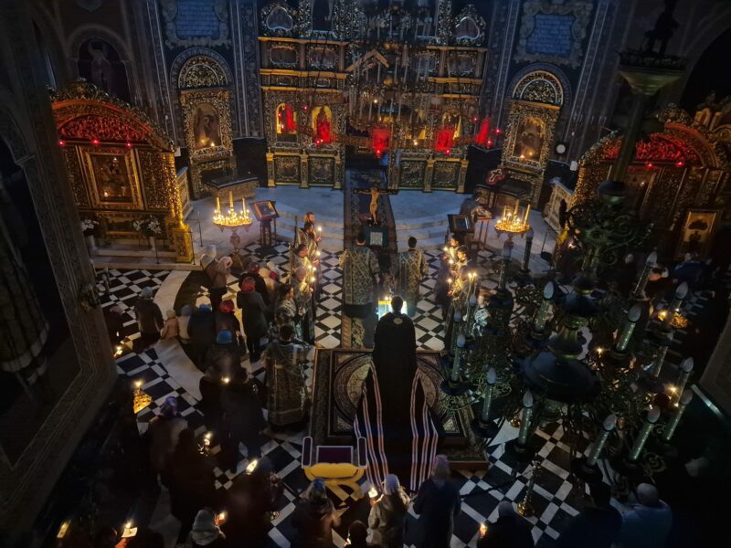 La serviciul divin alături de ierarh, sau rugat prot. mitr. Vadim Cheibaș. secretar mitropolitan și eclesiarh al catedralei și clericii slujitori. Slujba Pasiei a reunit creștini de pretutindeni, prin rugăciunile de pocăinţă şi umilinţă s-au apropiat spiritual de jertfa lui Hristos pentru neamul omenesc.