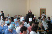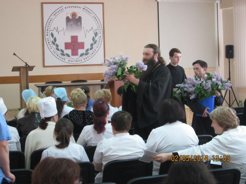 Pătintele Marin Cij, parohul bisericii Sf. Arh. Mihail din incinta spitalului a invitat pe toți colaboratorii, medicii și pacienții pentru a participa la sărbătoarea organizată. La eveniment au fost pezenți Pr. Eugen Baran, Pr .Maxim Radu-Tataru și diac. Veaceslav Bodarev, care au venit cu un cuvânt de felicitare pentu publicul adunat. De asemenea, a fost invitat corul Doxologia, care a îndulcit auzul ascultătorilor cu un deosebit program de cântări pascale.