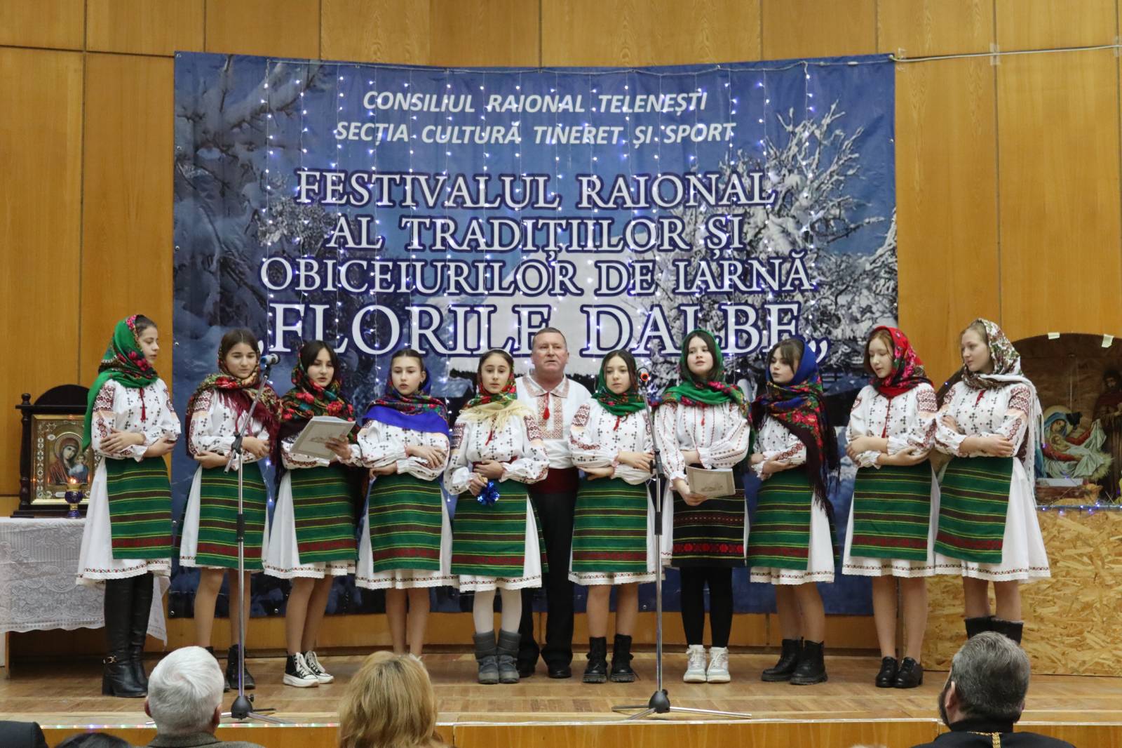 Cu binecuvântarea Înaltpreasfințitului Vladimir, Mitropolit al Chișinăului și al Întregii Moldove, la 10 ianuarie 2023 în incinta Consiliului Raional Telenești s-a desfășurat Festivalul Raional al Tradițiilor și Obiceiurilor de Iarnă „Florile Dalbe”, organizat de către Consiliul Raional Telenești, Secția Cultură, Tineret și Sport în colaborare cu Protopopiatul Telenești.