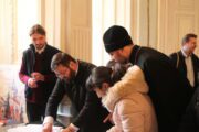 Evenimentul a debutat cu slujba Sfintei Liturghii, oficiată de Preasfințitul Ioan, Episcop de Soroca, vicar mitropolitan, dimpreună cu un impunător sobor de preoți și diaconi, la Biserica ”Întâmpinarea Domnului” din incinta Universității de Stat din Moldova.