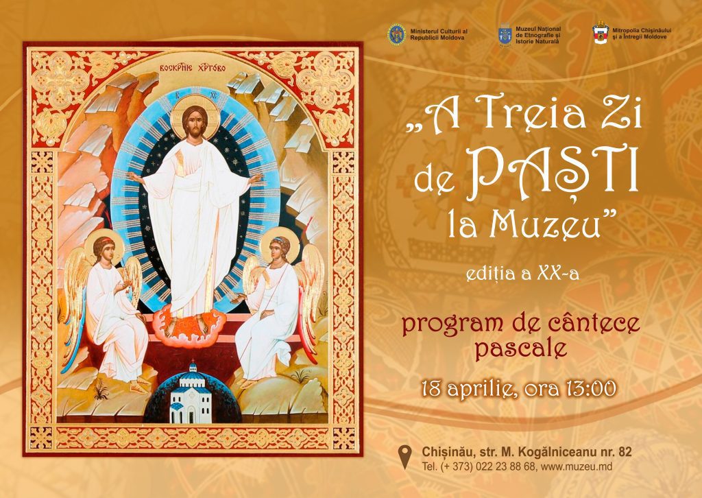 18 aprilie 2023. Muzeul Național de Etnografie și Istorie Națională din Chișinău. „A Treia Zi de Paști la Muzeu” – Festival de cântece pascale, ediția a XX-a, organizat de Sectorul Sinodal Activități Culturale în colaborare cu Muzeul Național de Etnografie și Istorie Naturală.