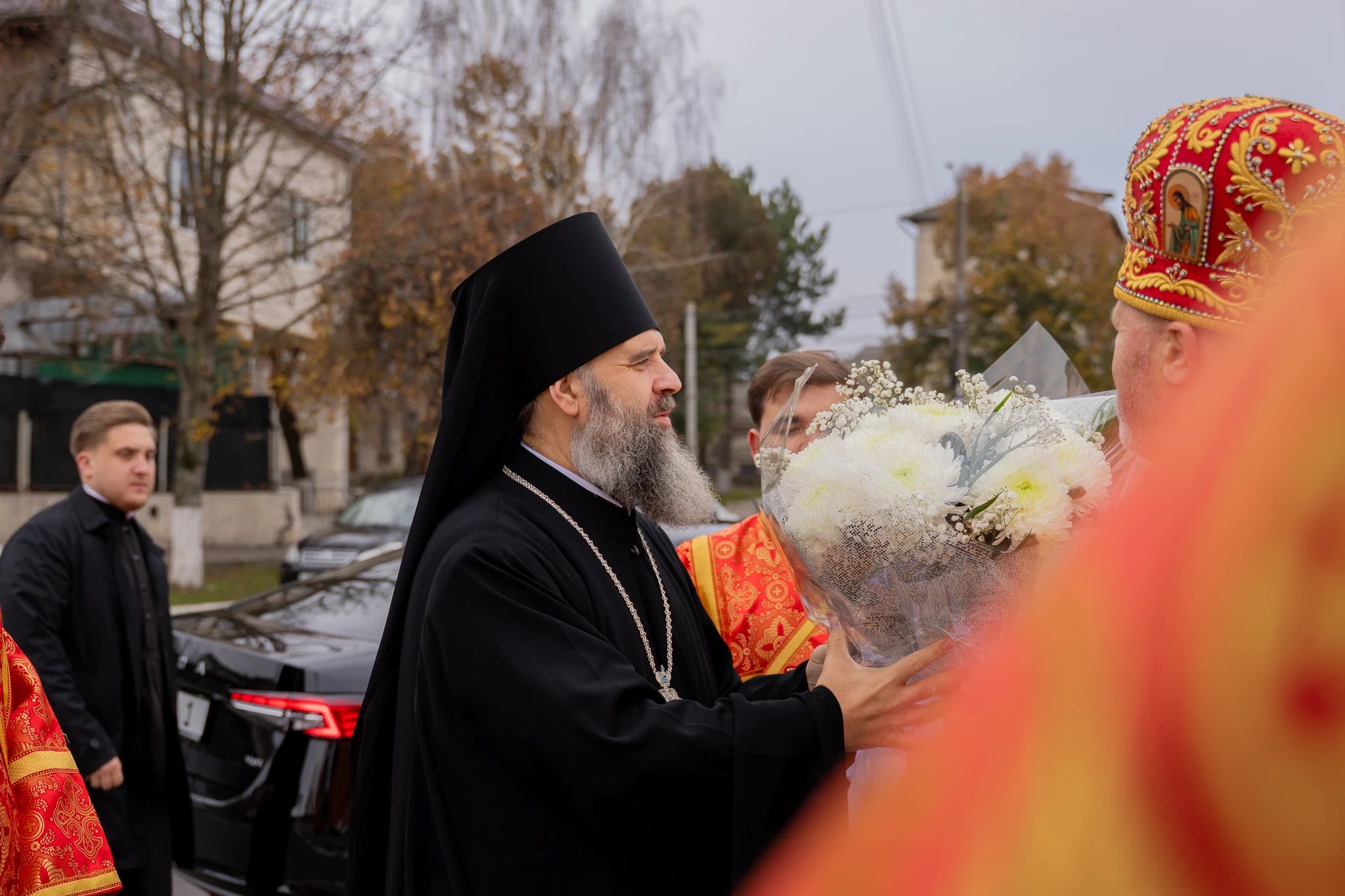 În dimineața praznicului, Ierarhul Orheiului a fost întâmpinat de părintele paroh, prot. mitr. Rodion Melnic.