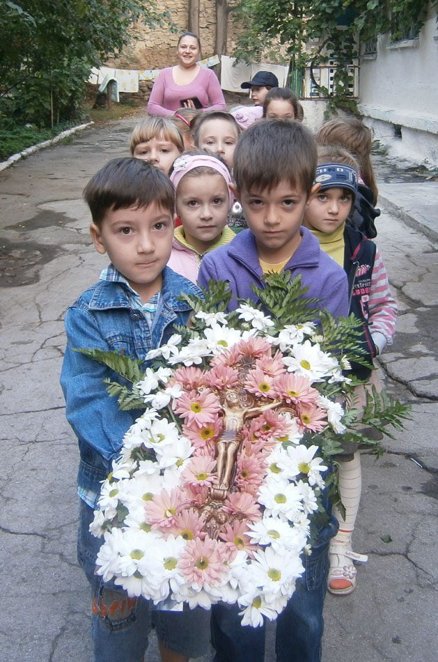 În ajunul sărbătorii copilaşii au împodobit o sfântă cruce cu flori, iar în dimineaţa praznicului, copiii însoţiţi de educatori şi părinţi au venit la sfânta biserică purtând înainte Sfânta Cruce împodobită chiar de ei.