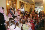 De sărbătoarea închinată Înălţării cinstitei şi de viaţă făcătoarei Cruci, la biserica din incinta Spitalului municipal „Sf. Arhangheli” au venit peste cincizeci de copilaşi de la grădinţa nr. 56 din capitală.