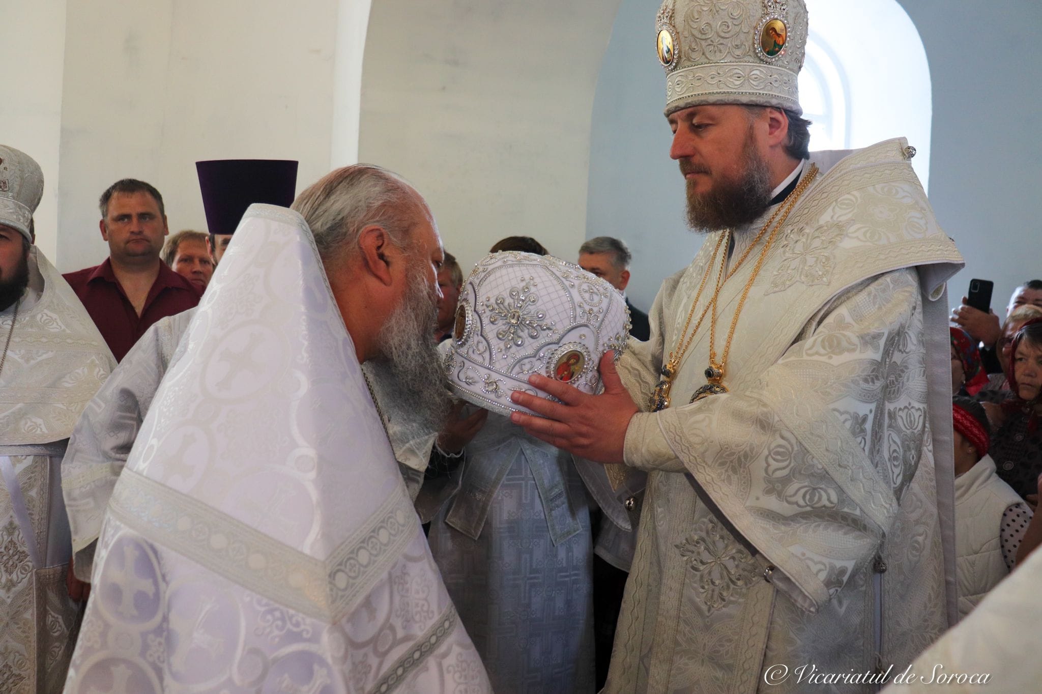 În timpul vohodului mic, cu binecuvântarea Întâistătătorului Bisericii Ortodoxe din Moldova, părintele paroh Ghenadie SERBENCIUC, a fost decorat cu dreptul de a purta mitră, iar protoiereul Ioan RÎPĂ, paroh al bisericii „Sfântul Ierarh Nicolae” din aceeași localitate a primit dreptul de a purta paliță și cruce cu pietre scumpe.