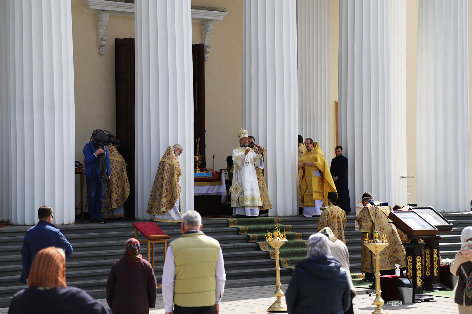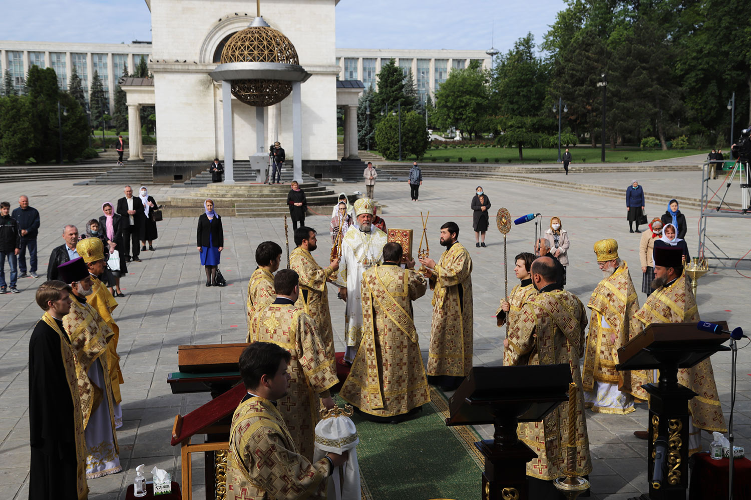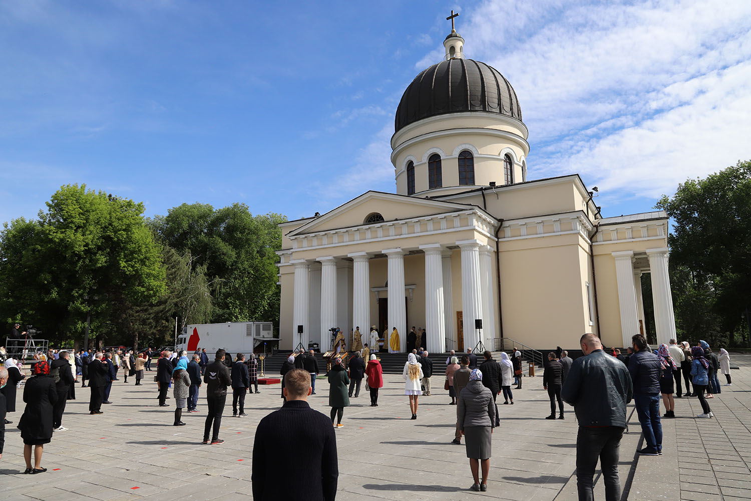 Serviciul divin a fost săvârșit în prezența credincioșilor care au venit în scuarul Catedralei, spre a mulțumi Atotțiitorului pentru mila Sa nemărginită, dar și pentru a-I cere sănătate și pace pentru cei vii și odihnă pentru cei răposați.