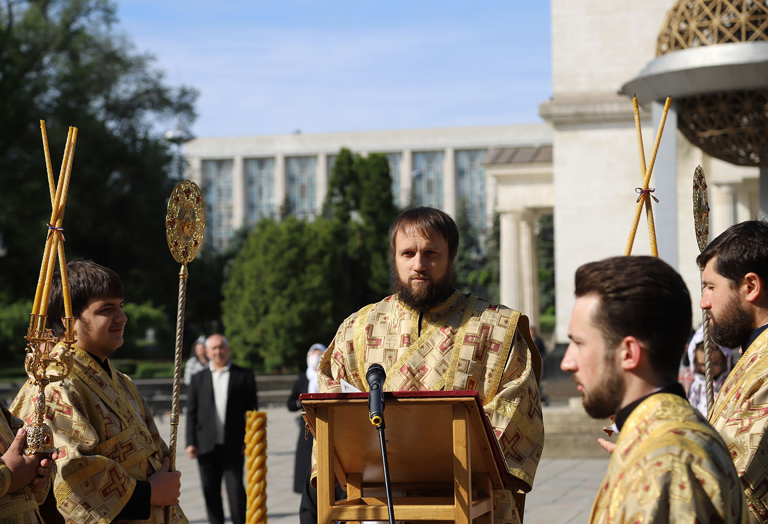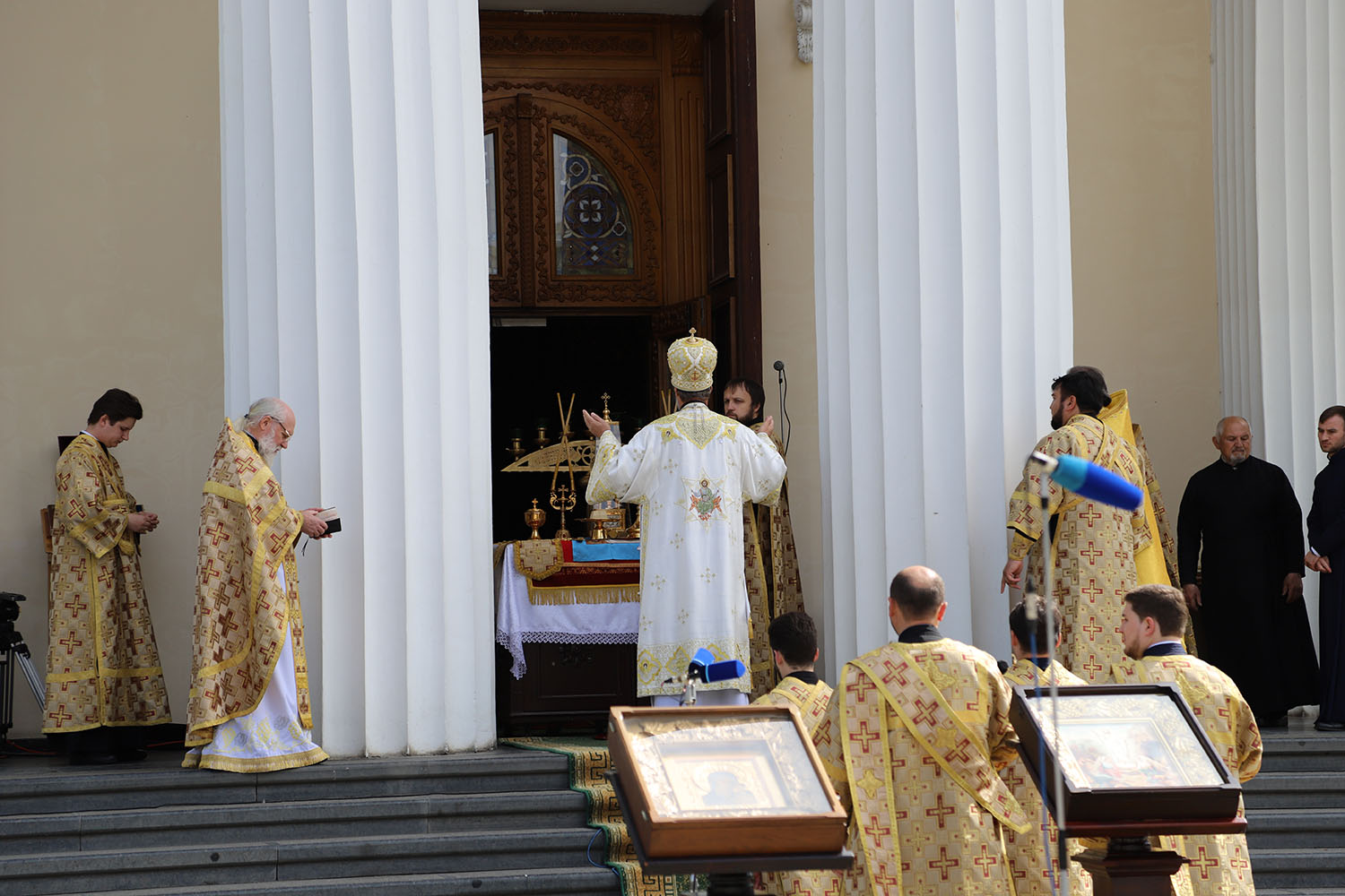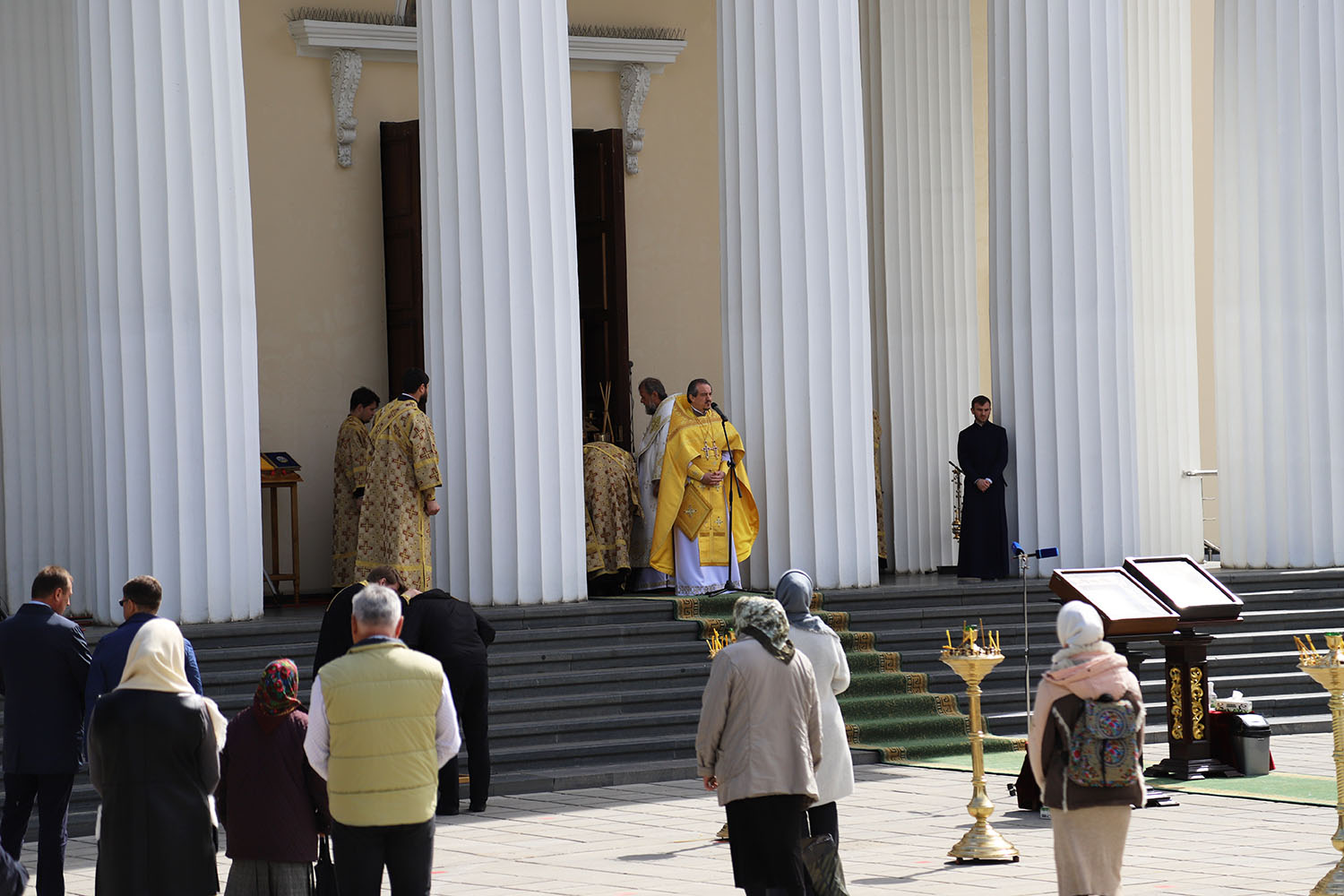 Serviciul divin a fost săvârșit în prezența credincioșilor care au venit în scuarul Catedralei, spre a mulțumi Atotțiitorului pentru mila Sa nemărginită, dar și pentru a-I cere sănătate și pace pentru cei vii și odihnă pentru cei răposați.