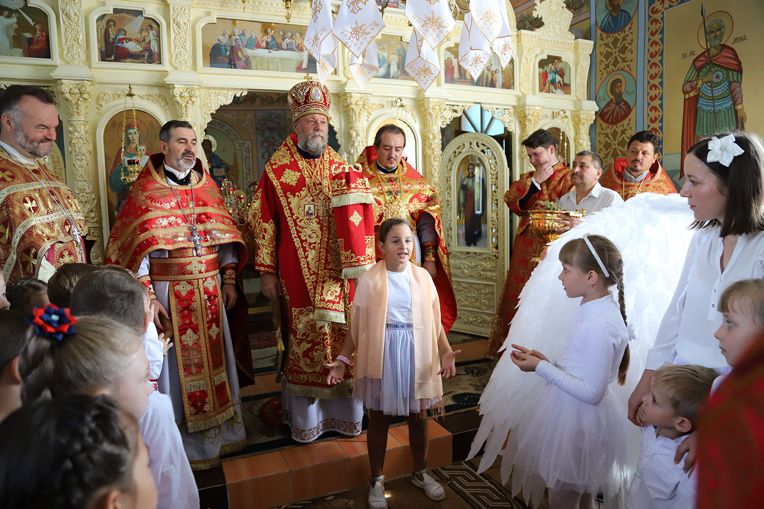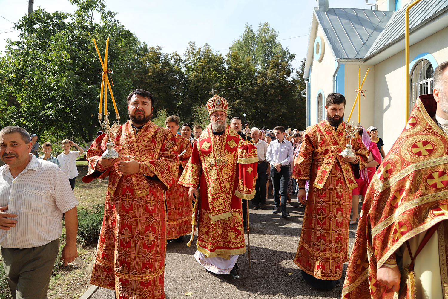După Liturghia arhierească, Vlădica Vladimir dimpreună cu clerul și poporul au oficiat înconjurul bisericii cu citirea pericopelor din Sfânta Evanghelie, după care a urmat Tedeumul de mulţumire.