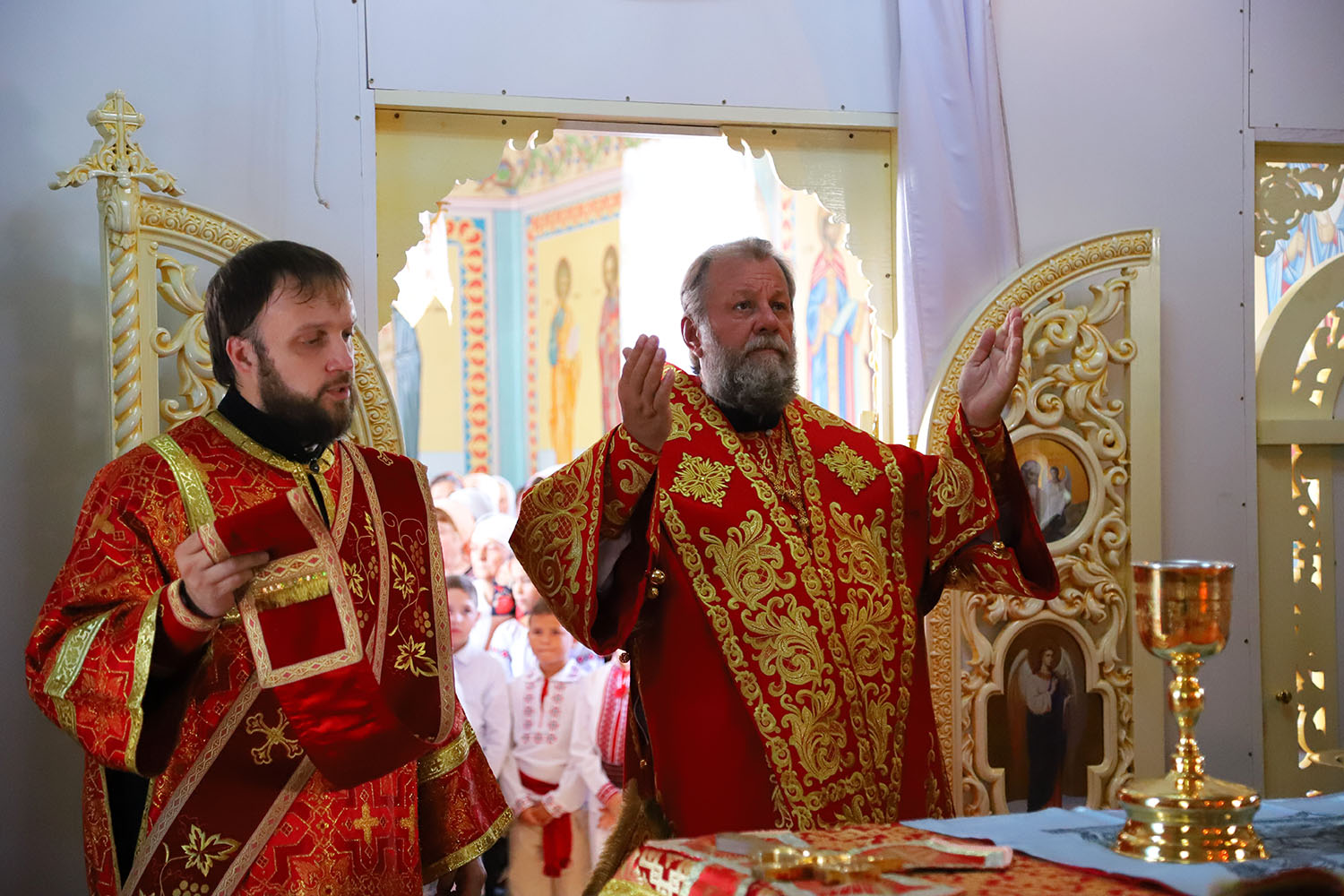 Răspunsurile liturgice la Slujba de Sfințire, precum și la Sfânta și Dumnezeiasca Liturghie au fost date de Grupul coral bărbătesc „Gnosis” din Chișinău, condus de teologul Serghei Crudu.
