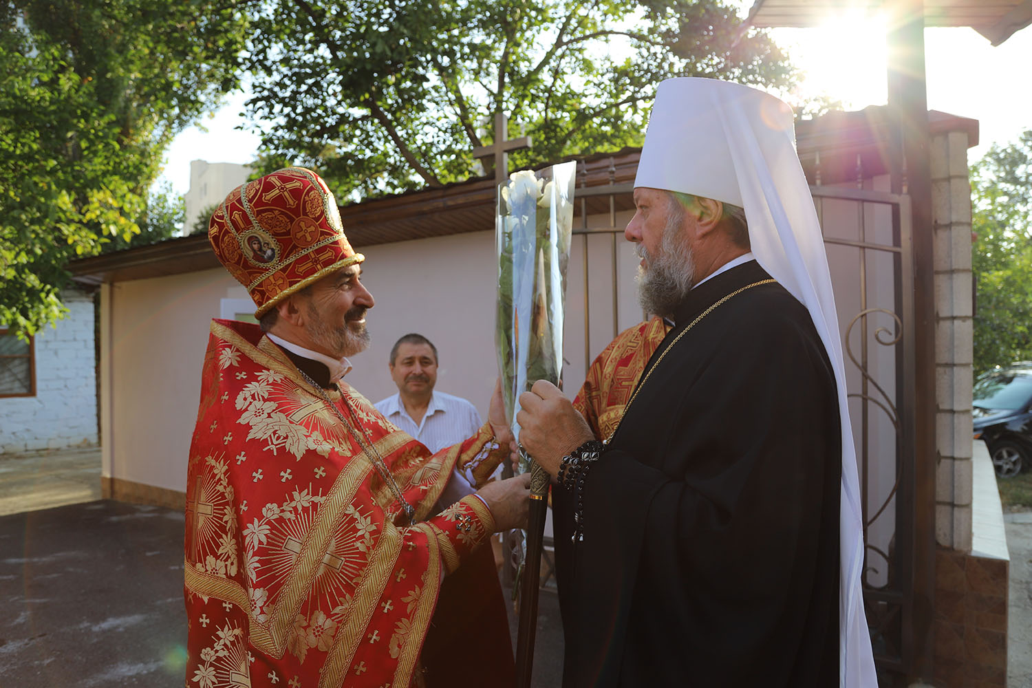 În dimineața zilei, Mitropolitul țării a fost întâmpinat la intrarea în curtea bisericii de către un sobor de preoți, în frunte cu părintele paroh Prot. Mitr. Gheorghe Răilean, însoțit de credincioșii păstoriți, care cu flori în mâini i-au urat bun venit Arhipăstorului.