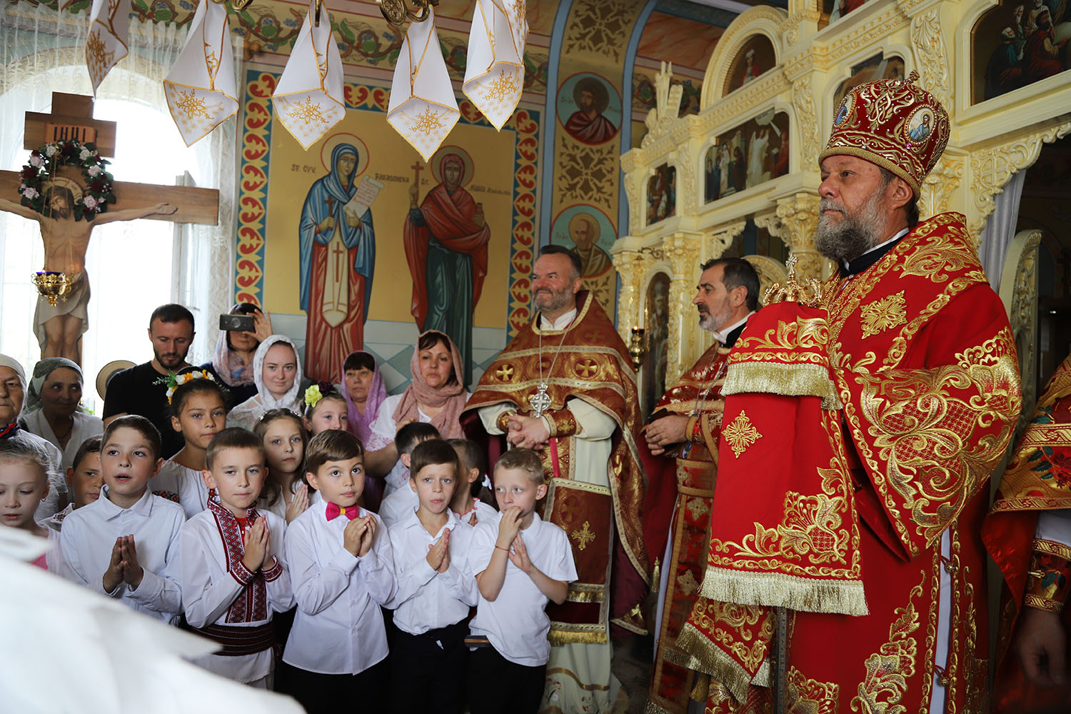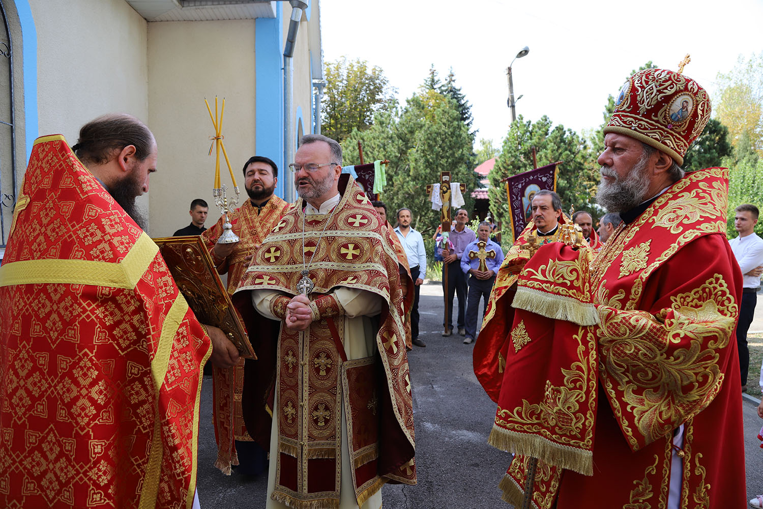 După Liturghia arhierească, Vlădica Vladimir dimpreună cu clerul și poporul au oficiat înconjurul bisericii cu citirea pericopelor din Sfânta Evanghelie, după care a urmat Tedeumul de mulţumire.