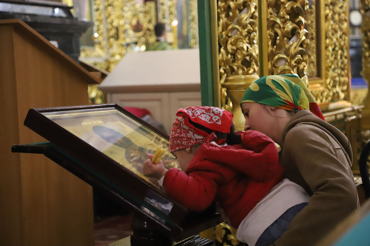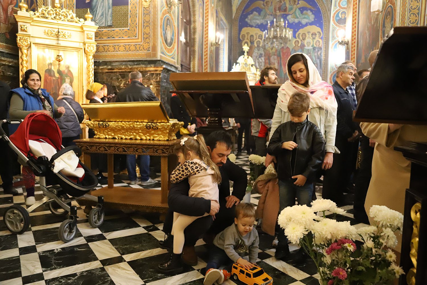După Rugăciunea Domnească – Tatăl Nostru, numeroşi credincioşi, printre care foarte mulţi copii, au primit împărtăşirea cu Sfintele Taine.