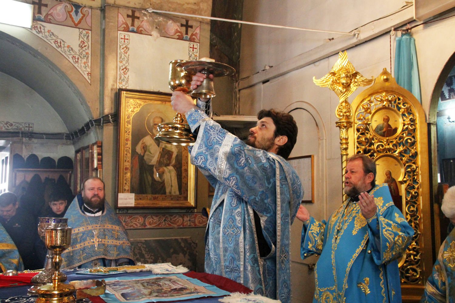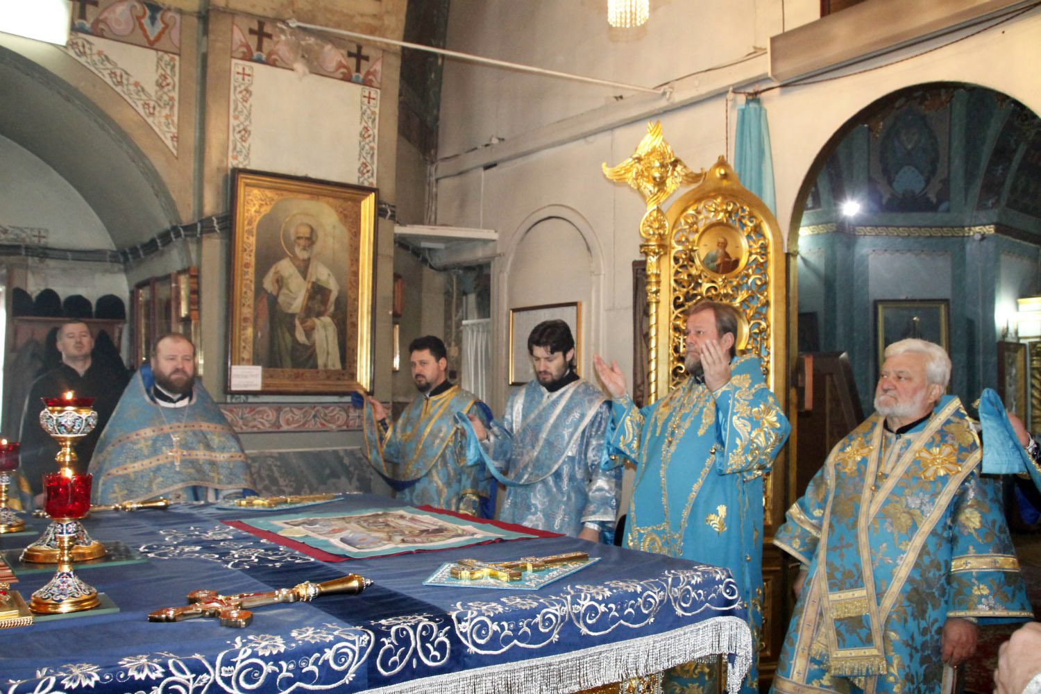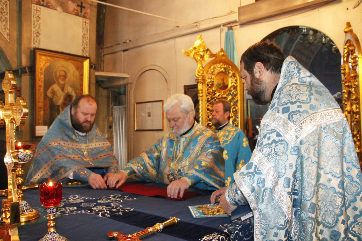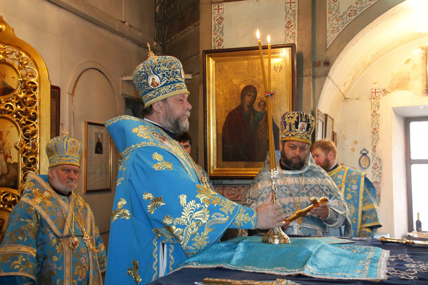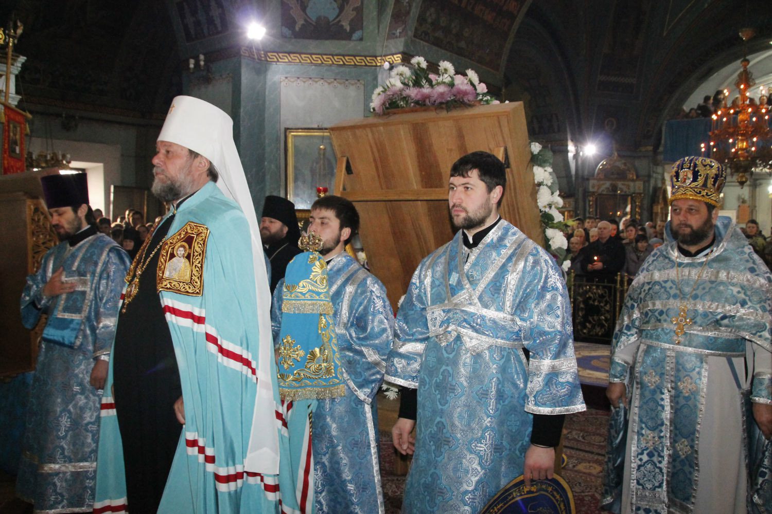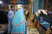 Slujba a început cu închinarea la icoana Maicii Domnului Hrănitoarea cu lapte, icoana Sf. Nectarie Taumaturgul cu părticele din moaște și două icoane cu chipul sfinților Arhangheli Mihail și Gavriil, aduse recent de la Sf. Munte Athos, Grecia, spre cinstire și binecuvântare credincioşilor.