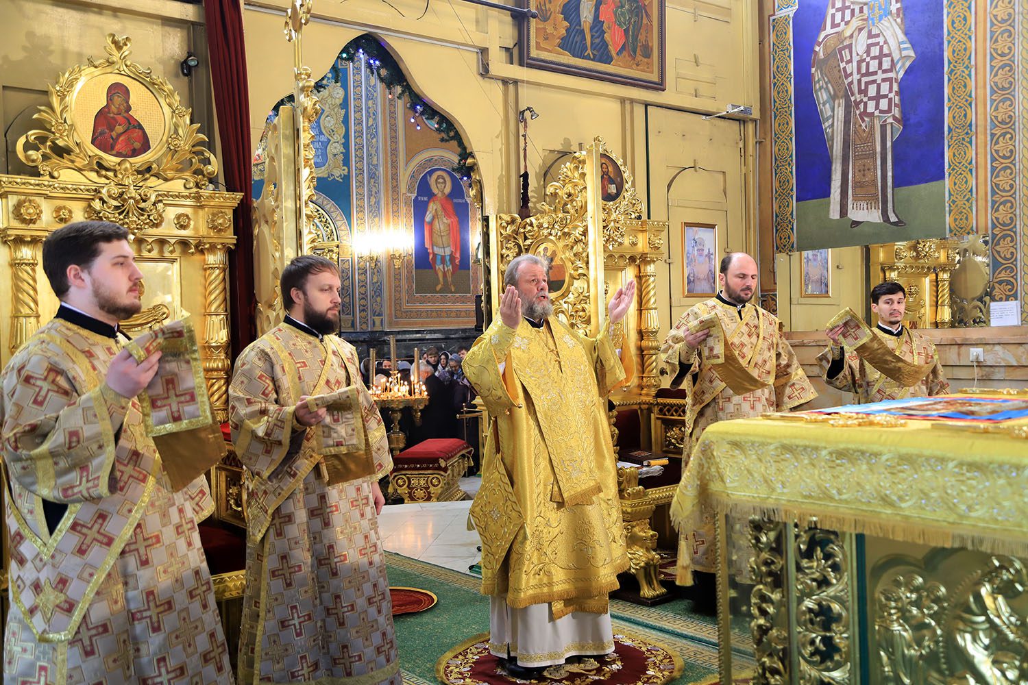Alături de Întâistătător au înălțat rugăciuni: Secretarul mitropolitan şi Eclesiarh al Catedralei Mitropolitane, Prot. mitr. Vadim Cheibaş, împreună cu slujitorii sfântului lăcaș, precum și Prot. mitr. Ioan Gherbovețchi, Protopopul parohiilor din Portugalia a Eparhiei de Corsun.