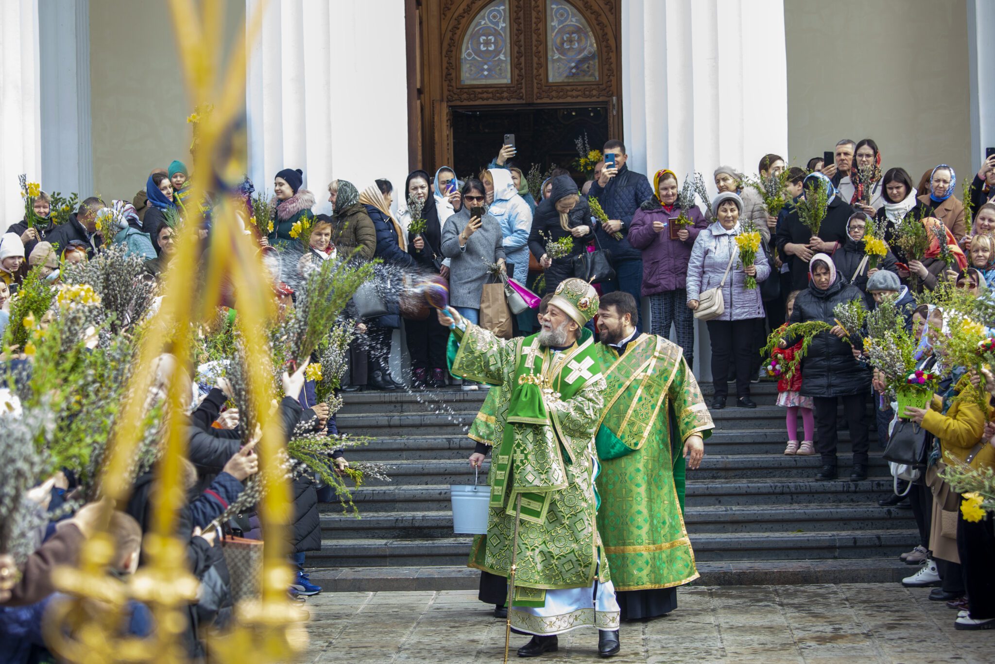 Spre final, ÎPS Vladimir a sfinţit stâlpările aduse de mulțimea de credincioși care au venit la Casa Domnului să aducă slavă și mulțumire bunului Dumnezeu pentru toate darurile Sale cele bogate. Datorită faptului că Intrarea Domnului în Ierusalim este o sărbătoare a bucuriei, Biserica a rânduit în această zi dezlegare la pește și vin.