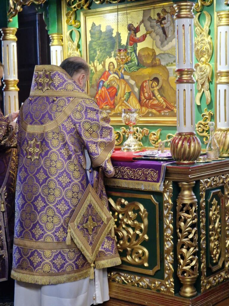 Serviciul divin a culminat cu împărtășirea clerului și a credincioșilor cu Sfintele Taine: Trupul și Sângele Domnului nostru Iisus Hristos.