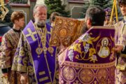 După Liturghie a urmat înconjurul celor două edificii eclesiale ale Mănăstirii și un Te-deum praznical.