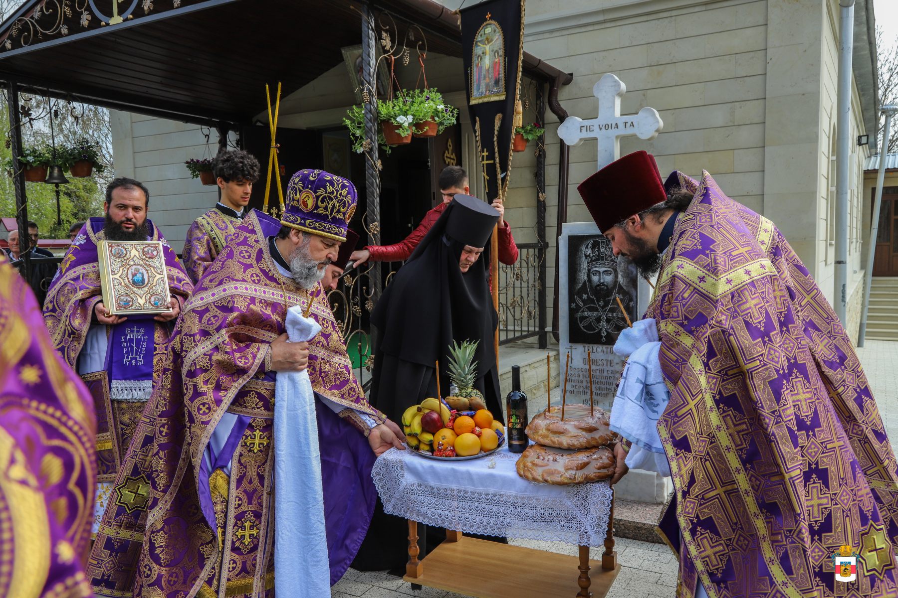 În cadrul Ecteniei pentru răposați, ÎPS Mitropolit Vladimir a înălțat rugăciuni pentru odihna sufletului vrednicului de pomenire Protoiereu mitrofor Tudor Tudoreanu, a preotesei Maria Tudoreanu și a ctitorilor și binefăcătorilor acestei Mănăstiri, trecuți la Domnul.