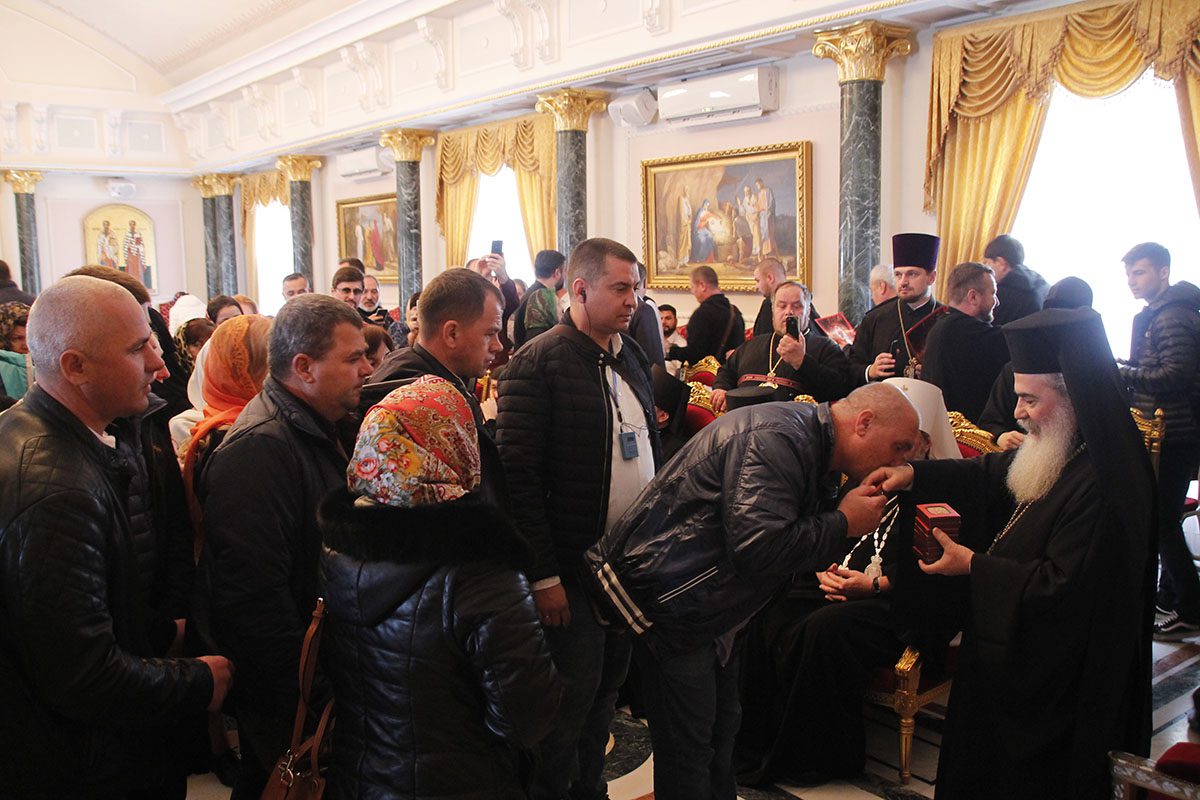 În semn de prețuire și cu multă evlavie, Mitropolitul Vladimir a oferit Patriarhului Ierusalimului daruri din partea Bisericii Ortodoxe din Moldova, iar, la rândul său, Preafericitul Părinte Teofil a oferit în dar pelerinilor câte o icoană a Maicii Domnului de la Ierusalim.