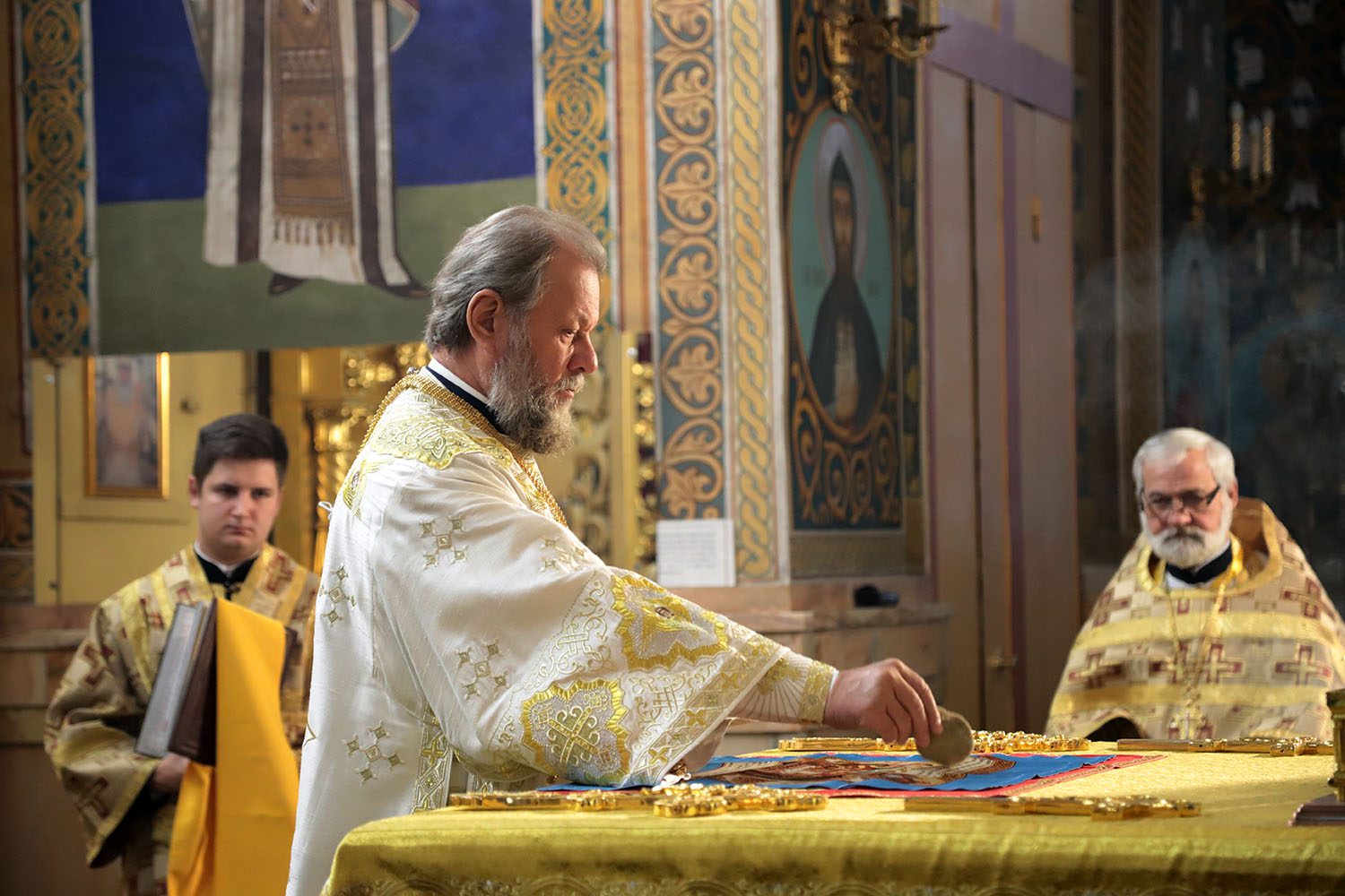 La finalul Sfintei Liturghii, Vlădica Vladimir l-a felicitat pe slujitorul Catedralei, Prot. mitr. Andrei Burlescu cu ziua sfântului protector, urându-i încă mulți ani de slujire vrednică la Altarul Domnului.