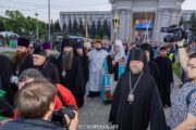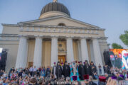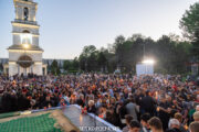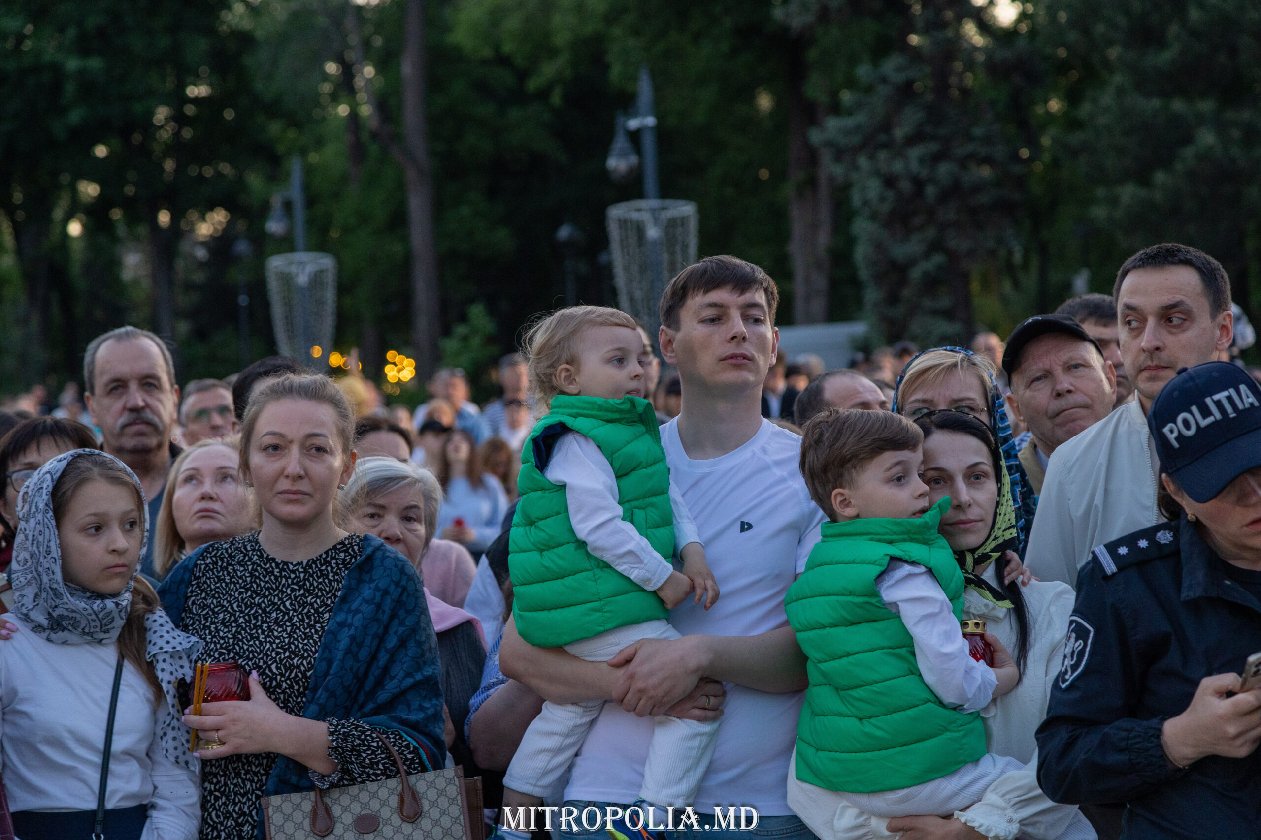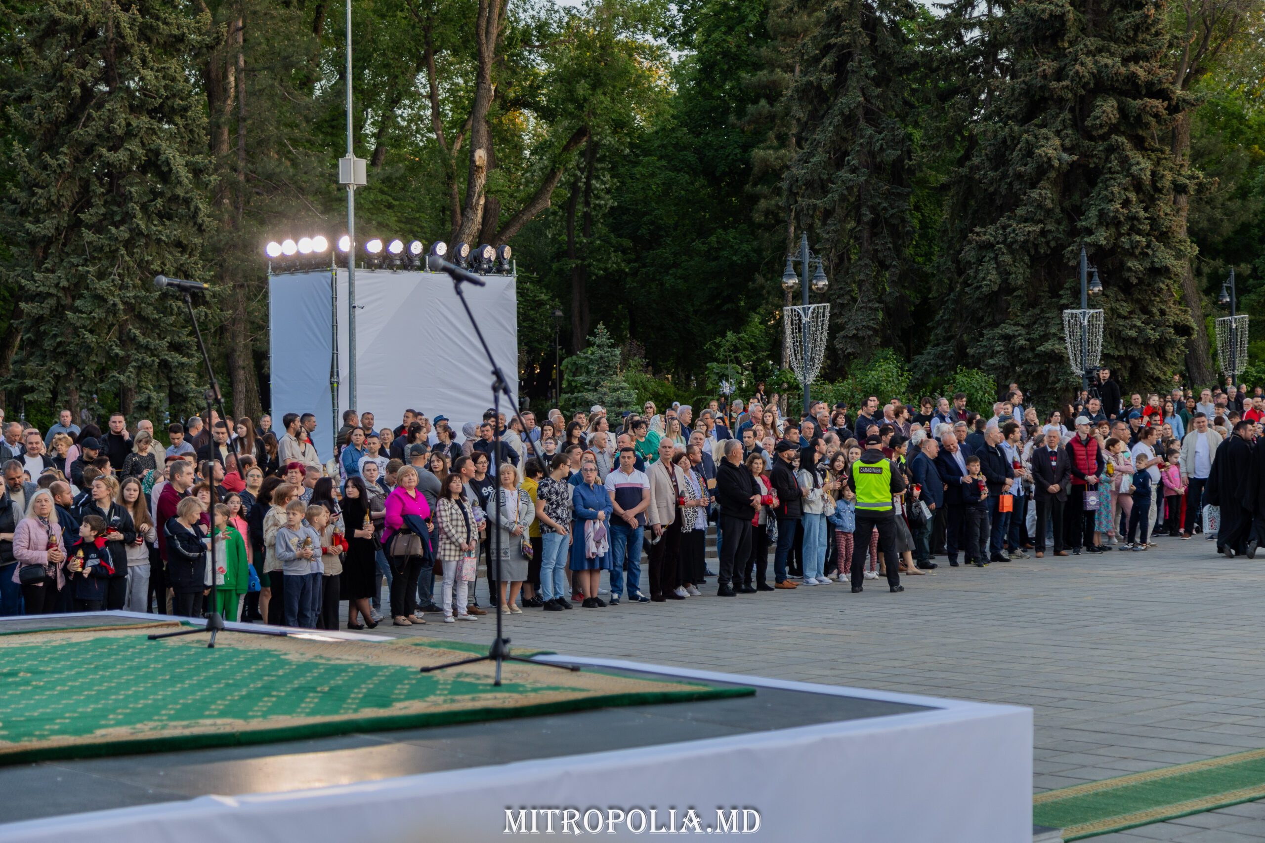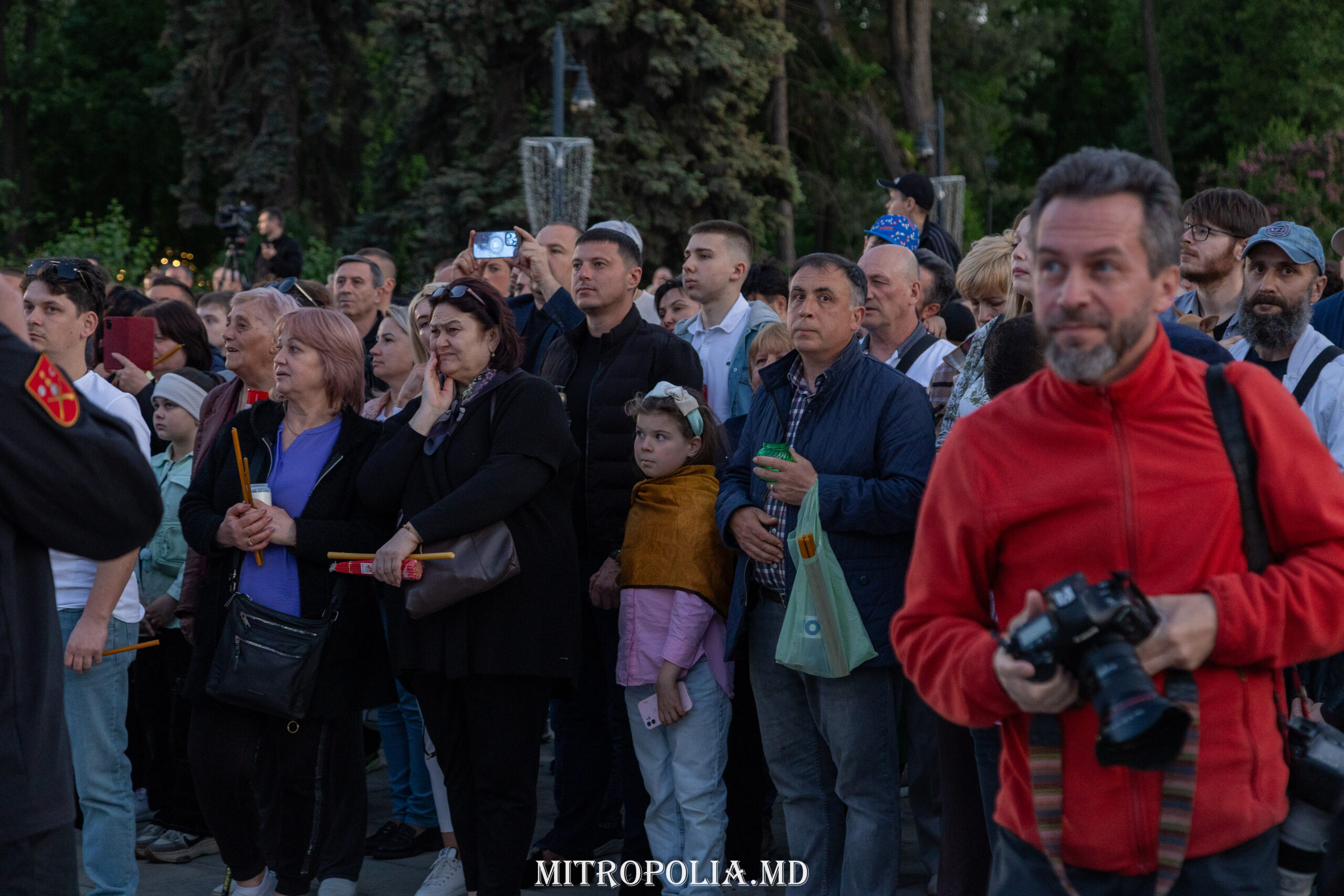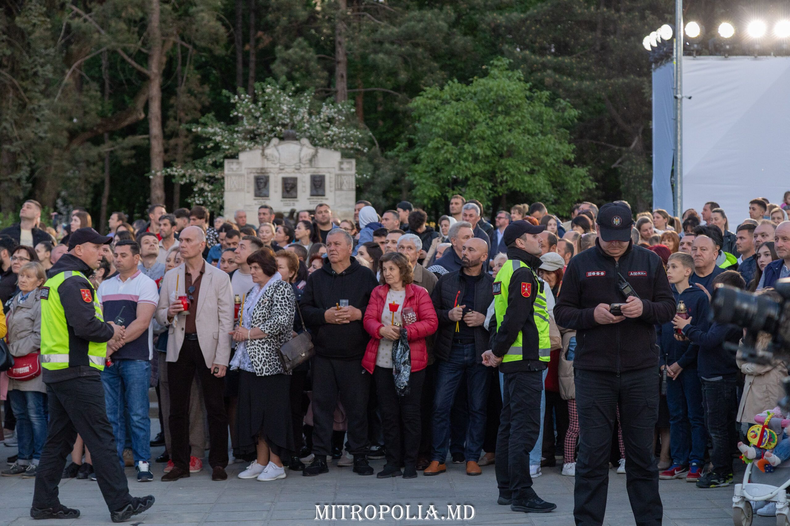 În seara zilei, în scuarul catedralei mitropolitane, Întâistătătorul Bisericii Ortodoxe din Moldova, Înaltpreasfințitul Vladimir, Mitropolitul Chișinăului și al întregii Moldove însoțit de episcopii-vicari: PS Ioan de Soroca, PS Siluan de Orhei, PS Nicolae de Ceadîr-Lunga, vicar al eparhiei de Cahul și Comrat, prot. mitr. Vadim Cheibaș, secretar mitropolitan și eclesiarh al catedralei, un sobor preoțesc și mulțimea de creștini veniți de pretutindeni, au întâmpinat la Arcul de Triumf, Sfânta Lumină de la Ierusalim.