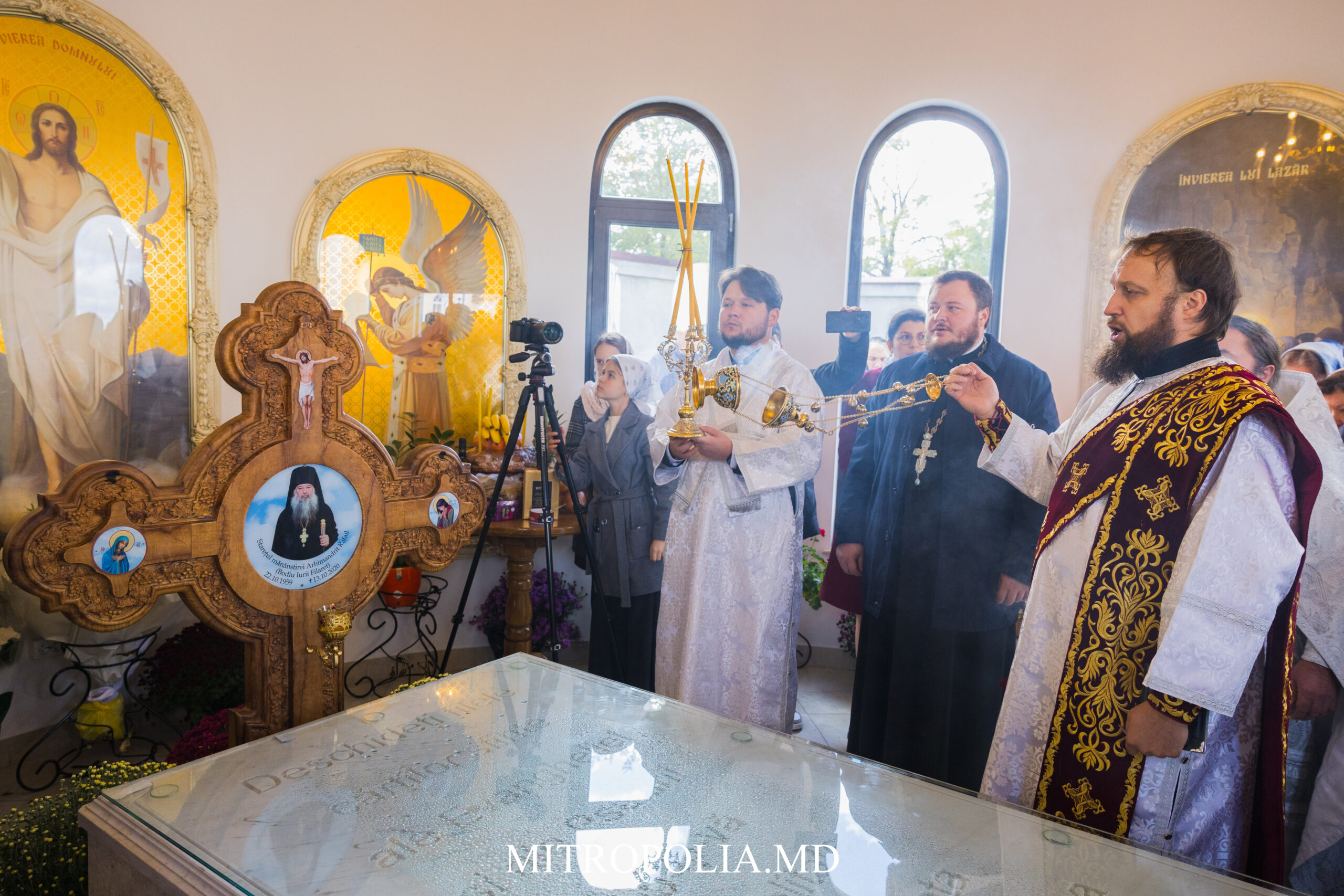 După Liturghie, soborul de ierarhi și preoți au săvârșit litia pentru adormiți, la mormântul Arhimandritului Rafail (Bodiu), întemeietorul și primul stareț al Mănăstirii acesteia.