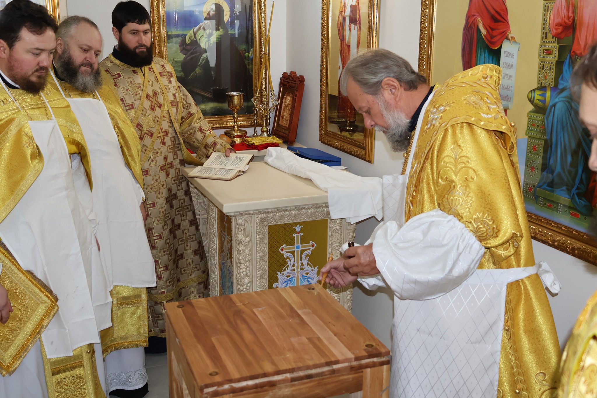 Serviciul divin a început cu rânduiala sfințirii prestolului, obiect nelipsit din cadrul ansamblului liturgic bisericesc.