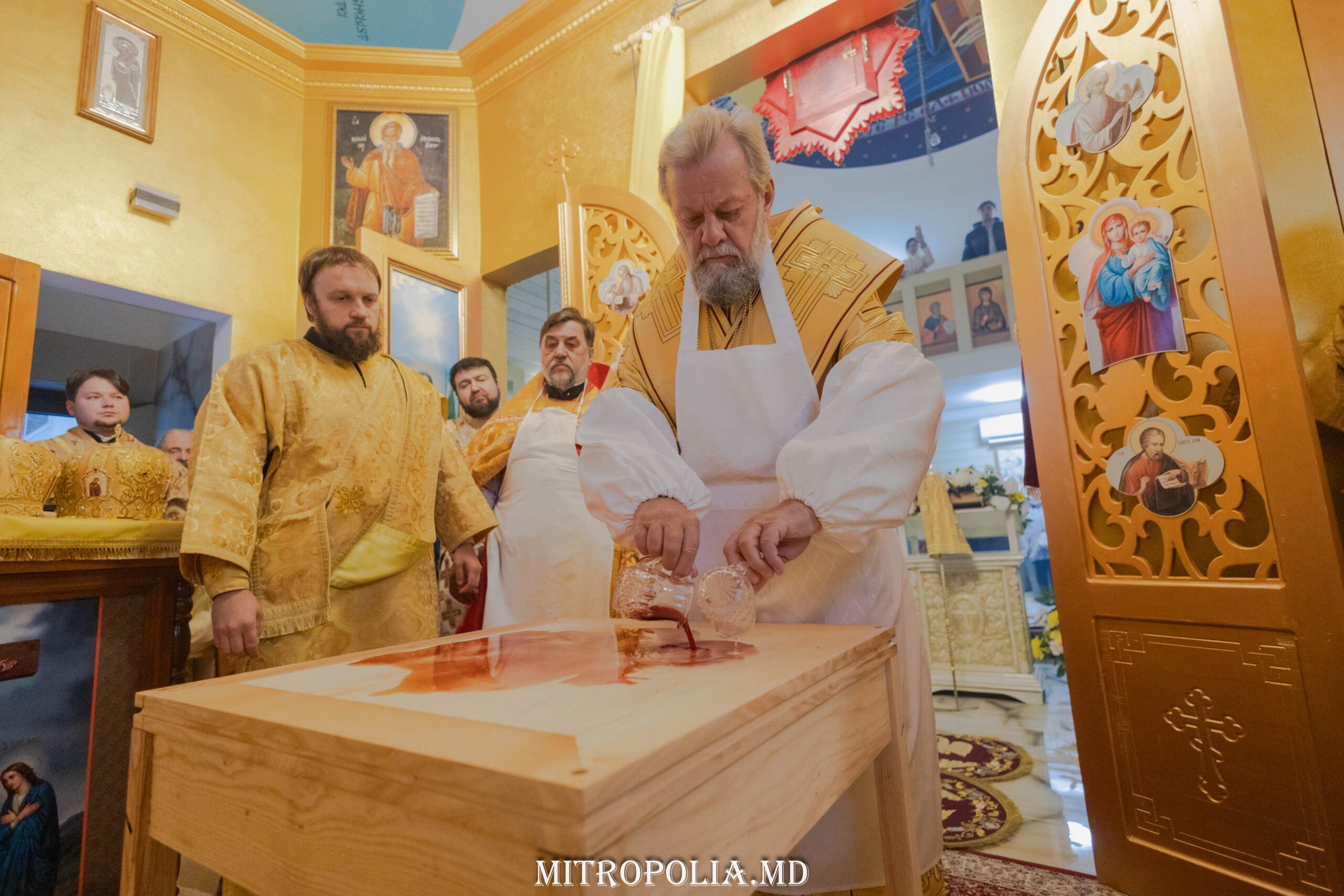Serviciul divin a început cu rânduiala sfințirii prestolului la care s-au rugat alături de Înaltpreasfinţia Sa, prot. mitr. Zosima Toia, protopopul bisericilor din Chișinău, sectorul III, părintele Petru Boian, parohul bisericii, un sobor de preoți și diaconi și credincioșii comunității.