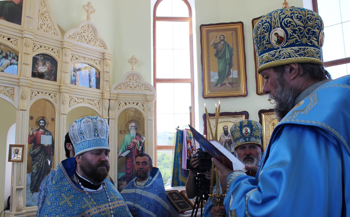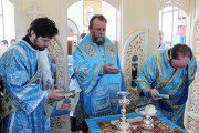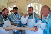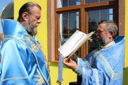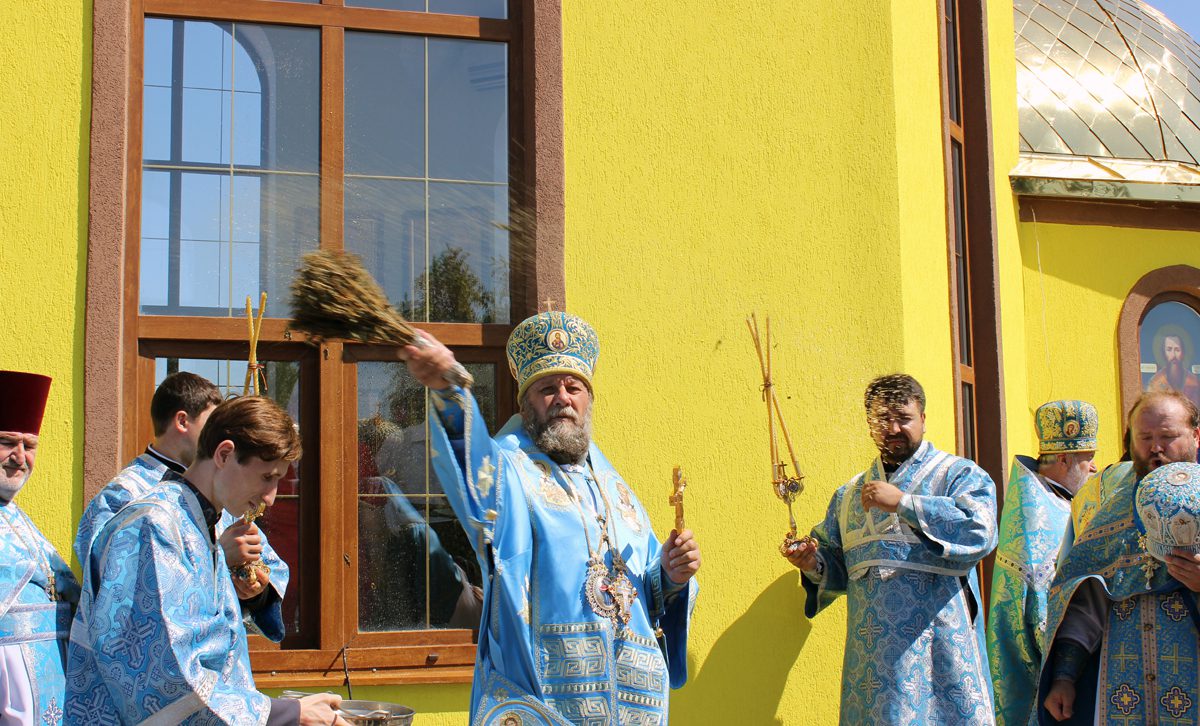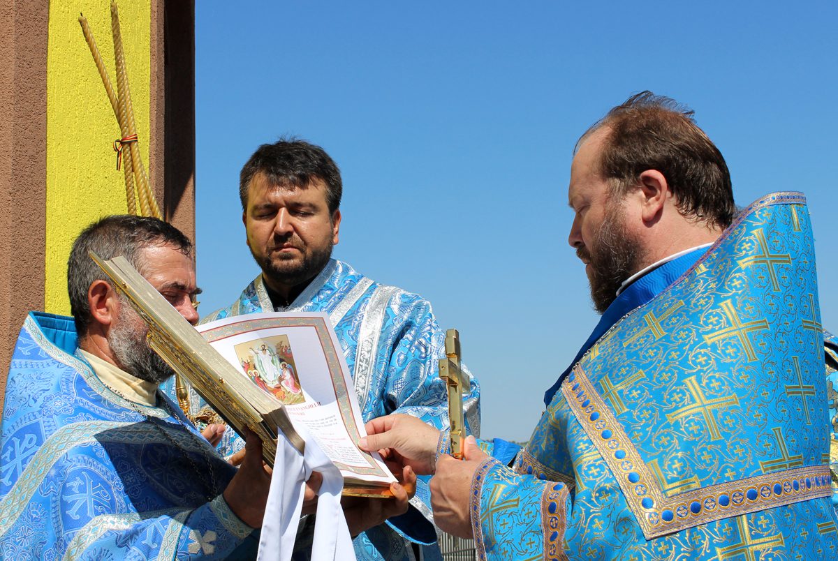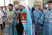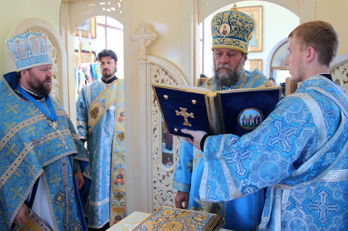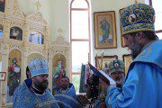 Mai apoi, Vlădica Vladimir s-a rugat dimpreună cu clerul și poporul în timpul Sfintei și Dumnezeieștii Liturghii, după care a fost înconjurată biserica cu citirea din Sfânta Evanghelie.