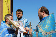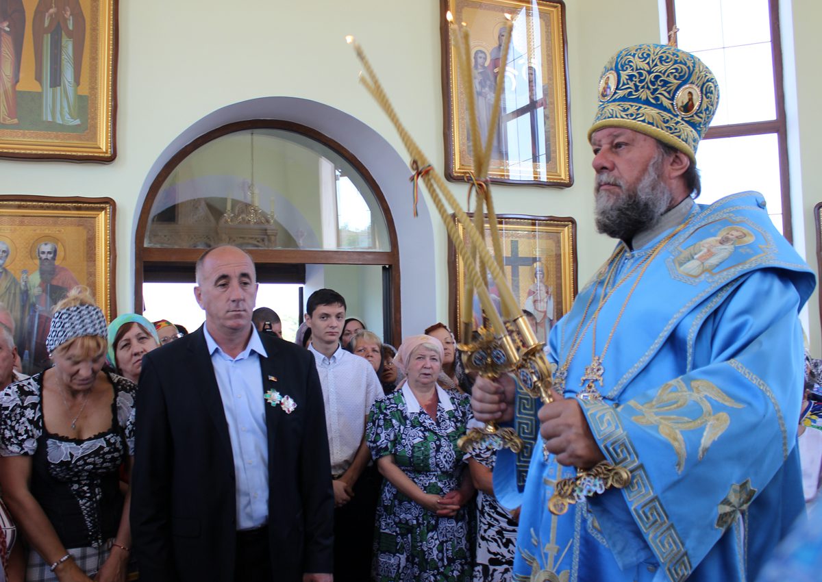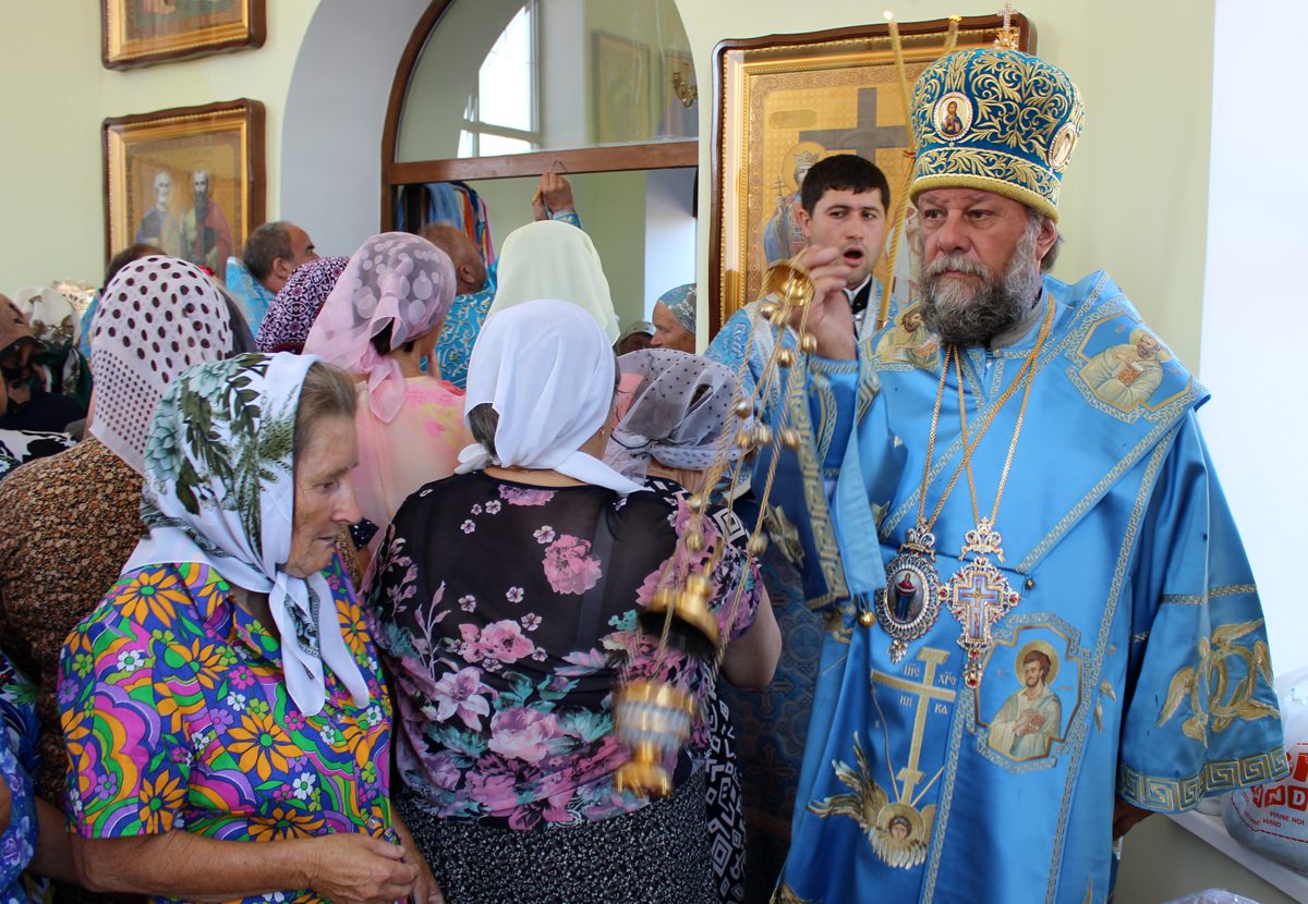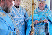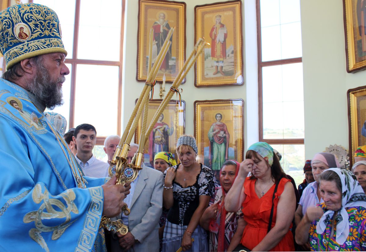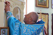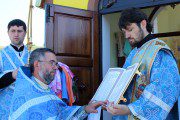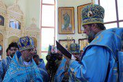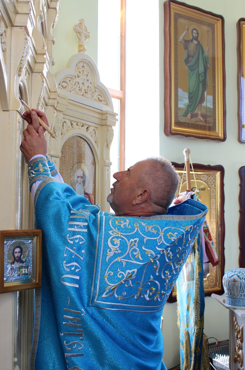 Mai apoi, Vlădica Vladimir s-a rugat dimpreună cu clerul și poporul în timpul Sfintei și Dumnezeieștii Liturghii, după care a fost înconjurată biserica cu citirea din Sfânta Evanghelie.