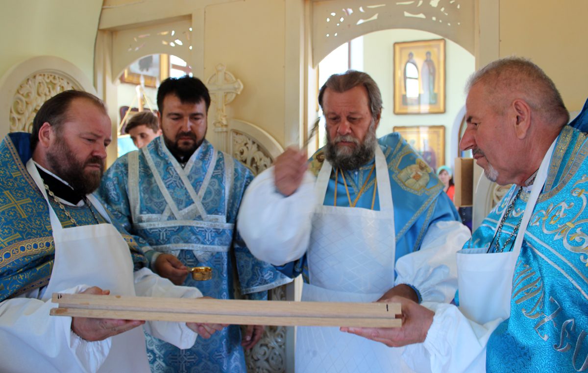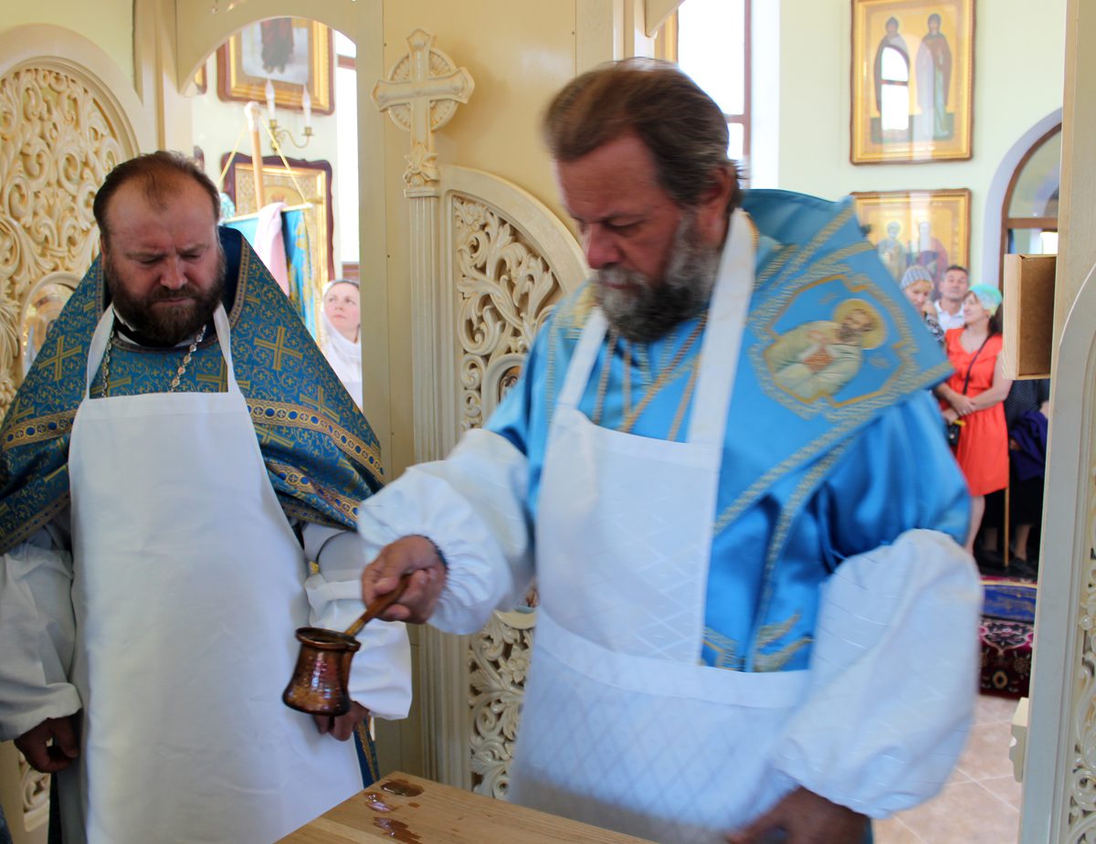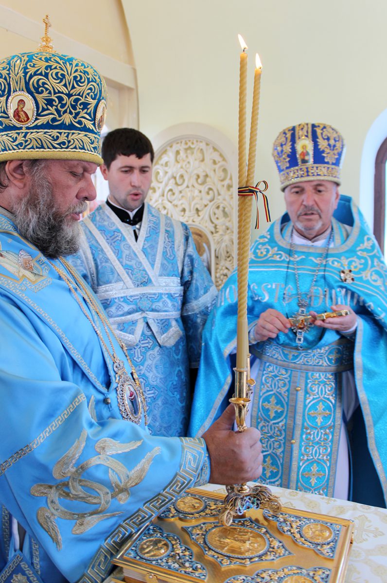 În continuare, Vlădica Vladimir a sfințit prestolul bisericii cu hramul „Sfântul Apostol și Evanghelist Ioan Teologul”, a cărei piatră de temelie a fost pusă de către Mitropolit acum un an.