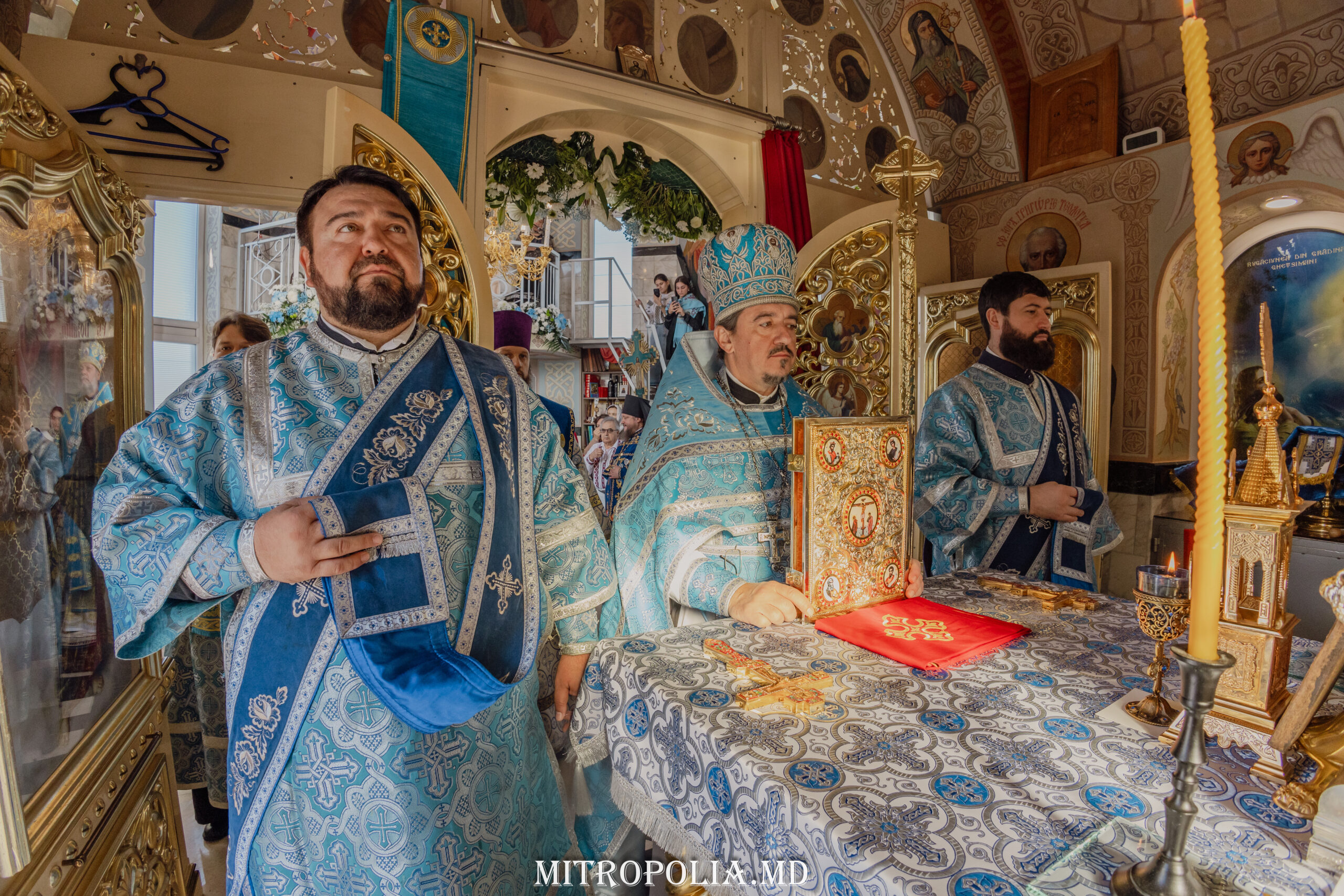 Sfânta Liturghie a început cu rânduiala de Sfințire a interiorului bisericii.