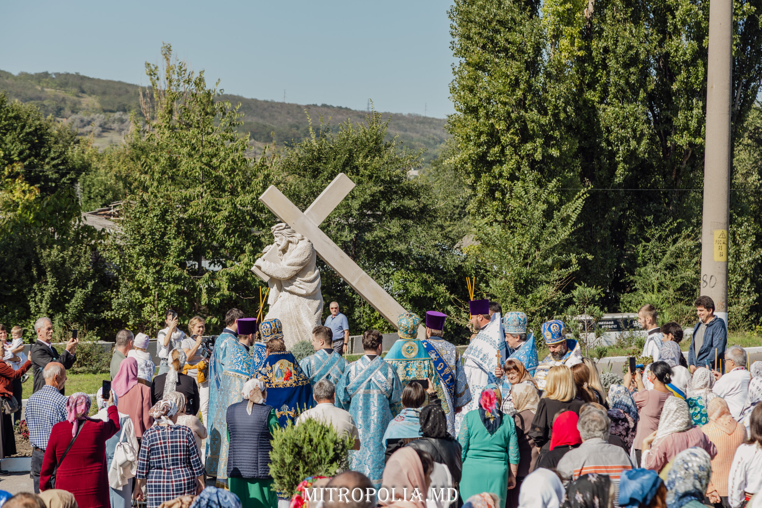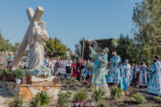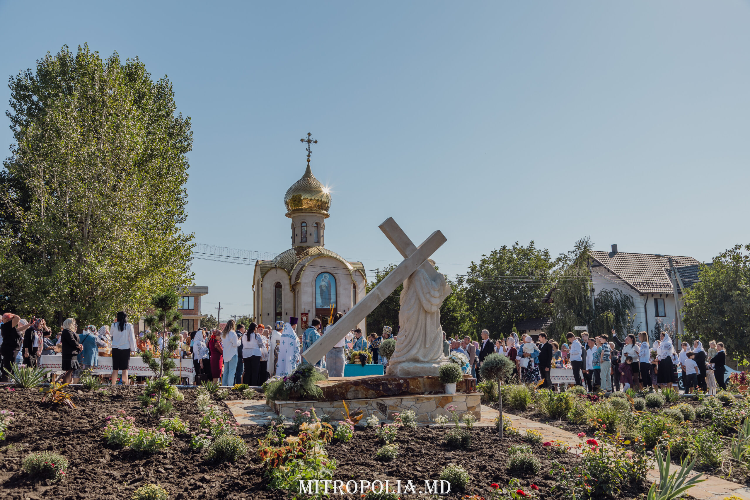 După Sfânta Liturghie a urmat rânduiala sfințirii monumentului religios ce reprezintă Drumul Crucii a Mântuitorului, amplasat în fața bisericii.