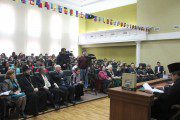 Evenimentul s-a desfăşurat în Sala Senatului USM, unde Întâistătătorul s-a adresat studenţilor cu un cuvânt de salut, felicitând pe toţi cei prezenţi pentru munca sârguincioasă pe care o depun spre folosul societăţii şi menţionând în acelaşi timp că jurnalistul, în misiunea sa de răspândire a adevărului, trebuie să ţină cont şi de valorile noastre spirituale, care ne definesc ca popor şi societate.