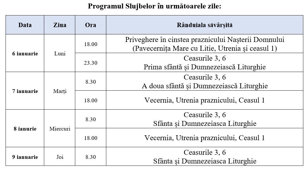 În ajunul sfintelor sărbători de iarnă, obștea Mănăstirii Zăbriceni, vă invită să participați la frumoasele evenimente, pentru a cinsti marele praznic al Nașterii Domnului, care este și hramul principal al mănăstirii. A treia zi de hram (9 ianuarie) serviciul divin va fi oficiat de către Întâistătătorul Bisericii Ortodoxe din Moldova, ÎPS Vladimir, Mitropolit al Chișinăului și al întregii Moldove, dimpreună cu alți clerici, oaspeți și invitați.
