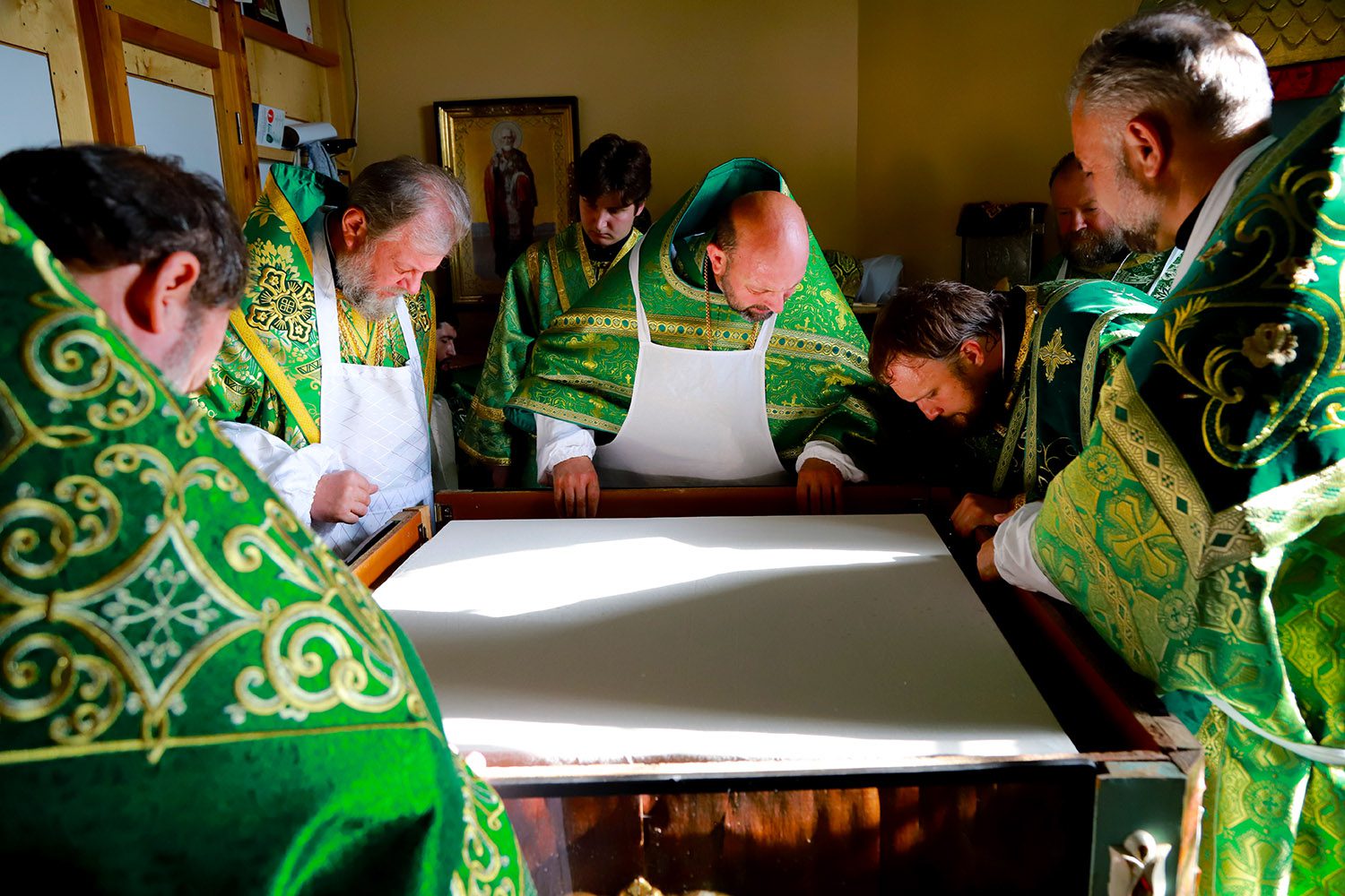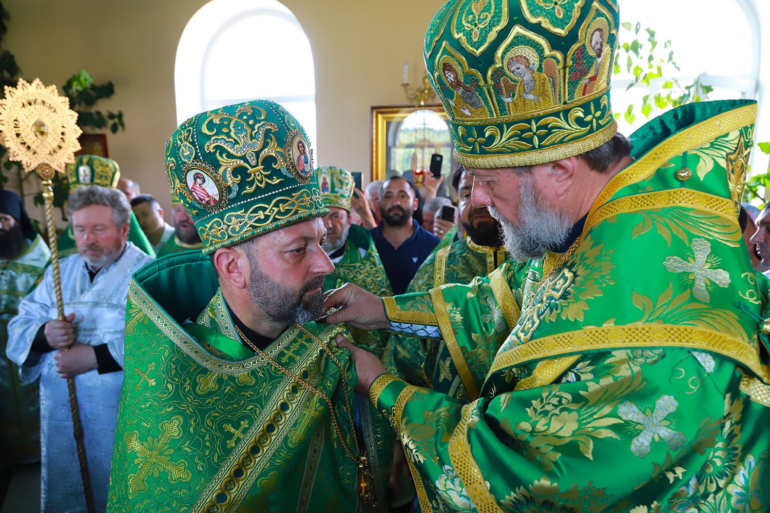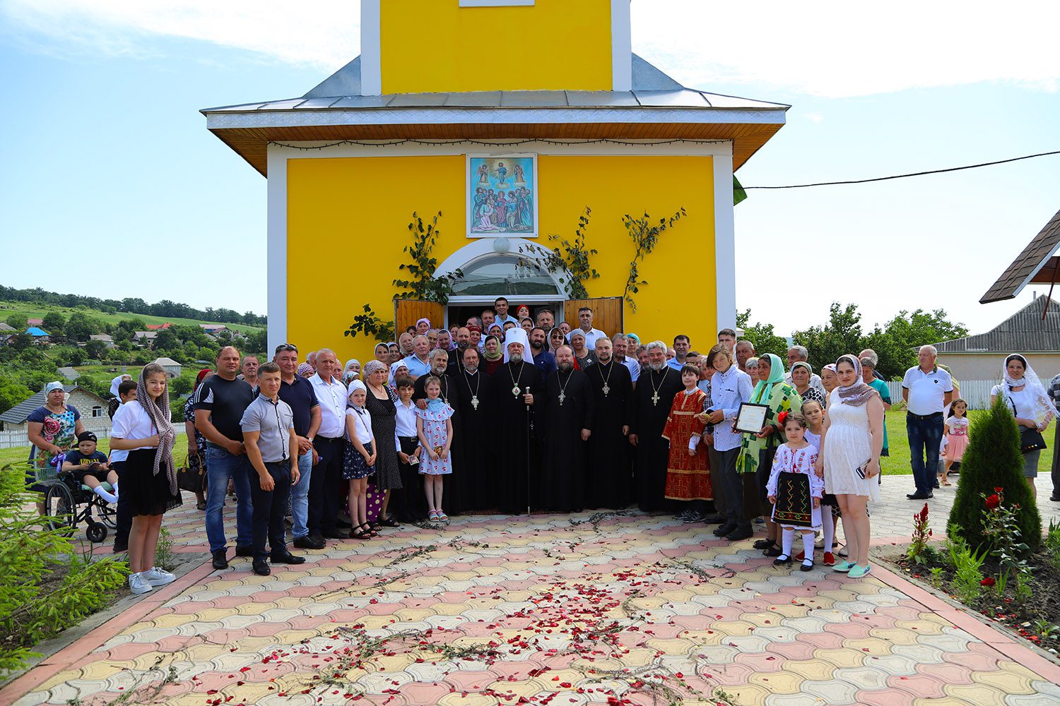 În dimineața zilei, Mitropolitul Moldovei a fost întâmpinat în fața bisericii de către un sobor de preoți și diaconi, în frunte cu părintele protopop de Ialoveni, Prot. mitr. Anatolie Stefanov.
