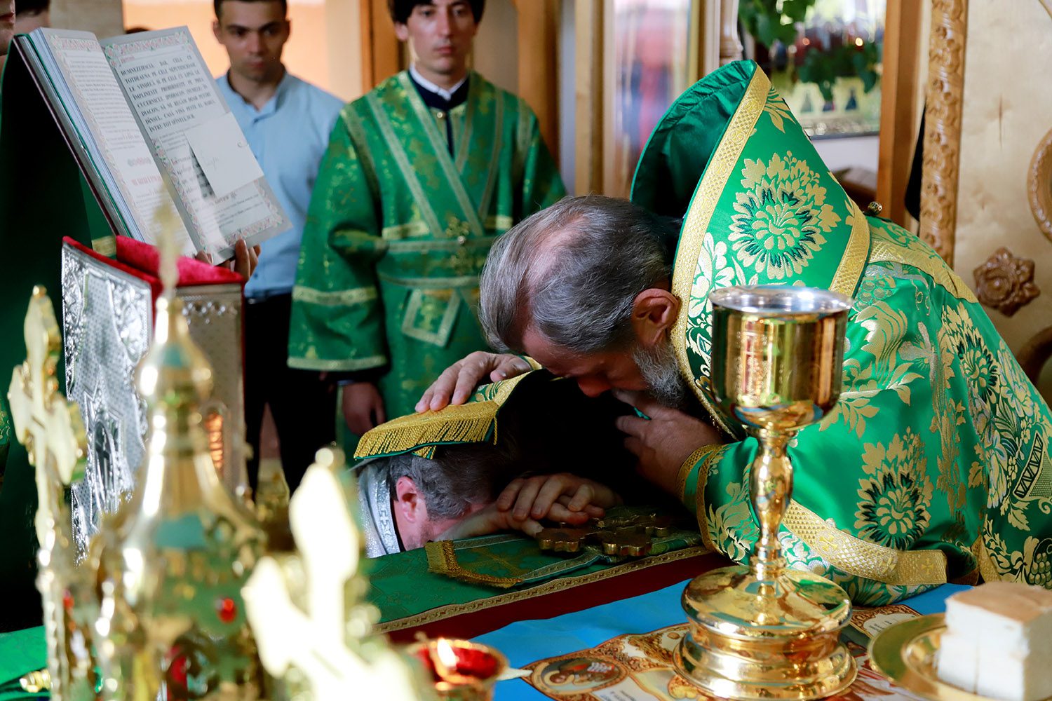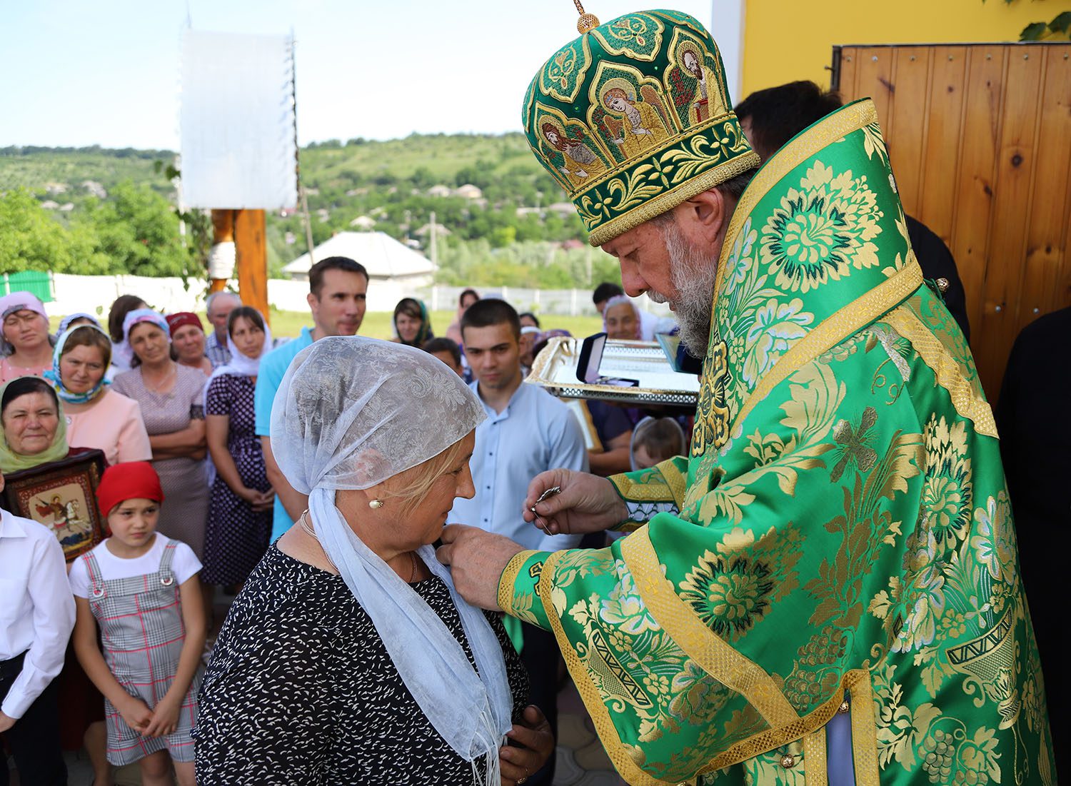 În timpul serviciului divin, la Vohodul mic, părintele-paroh Mihail a primit binecuvântarea Întâistătătorului de a sluji Sfânta Liturghie cu Ușile Împărătești deschise până la rugăciunea Tatăl Nostru și a fost decorat cu înalta distincție mitropolitană – ordinul „Sf. Irh. Gavriil Bănulescu Bodoni” de gr. II, în semn de apreciere pentru munca sârguincioasă spre binele și mărirea Bisericii Ortodoxe din Moldova.