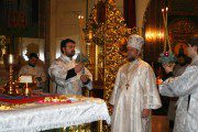 În ajun de Bobotează, Înalt Prea Sfințitul Mitropolit Vladimir, înconjurat de slujitorii Catedralei „Nașterea Domnului” a săvârșit Sfânta și Dumnezeiasca Liturghie.