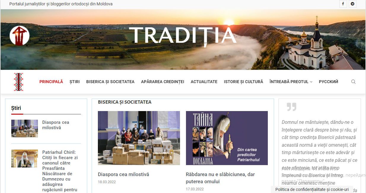 Mitropolitul Chișinăului și al întregii Moldove Vladimir a adresat un mesaj cu prilejul apariției noastre. „Salutăm și binecuvântăm cu bucurie lansarea portalului jurnaliștilor și bloggerilor ortodocși din Moldova «Tradiția». Această realizare reprezintă un eveniment de importanță majoră pentru presa scrisă cu caracter bisericesc din țara noastră”, se spune în document.