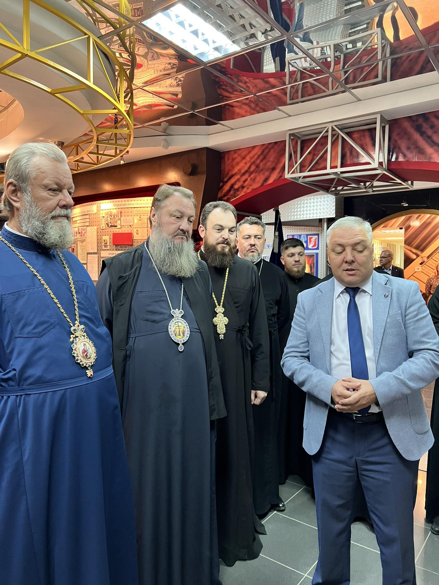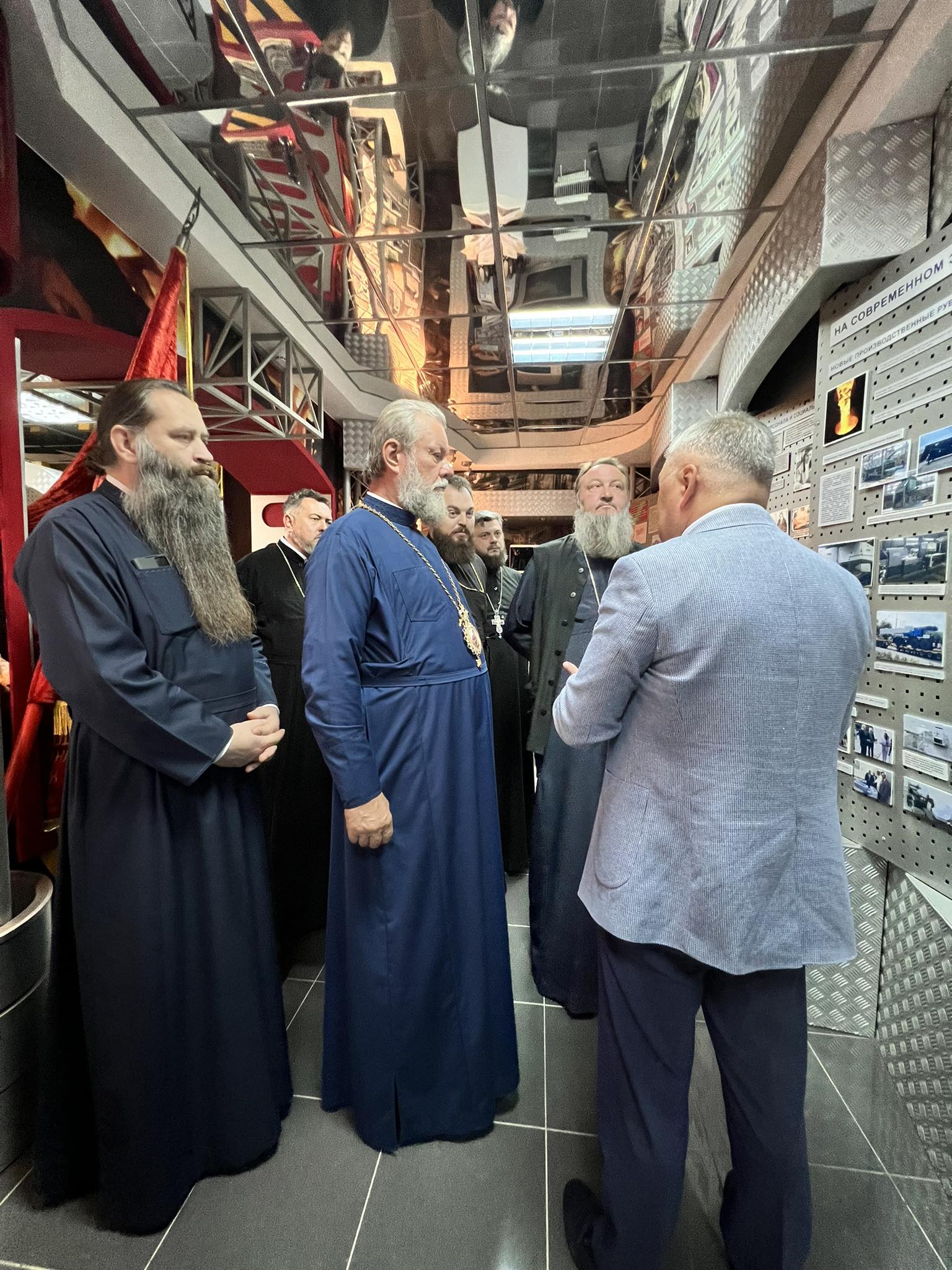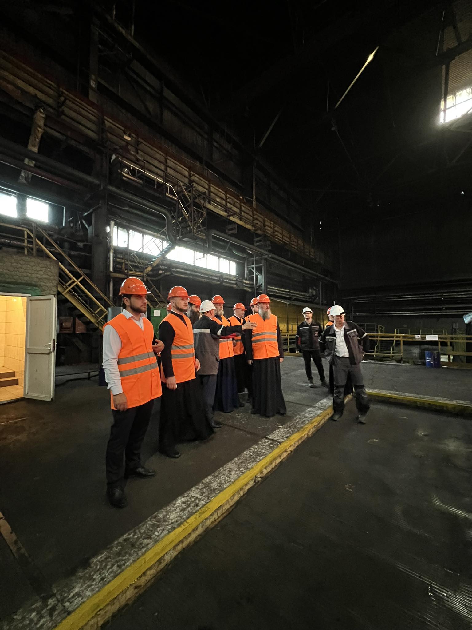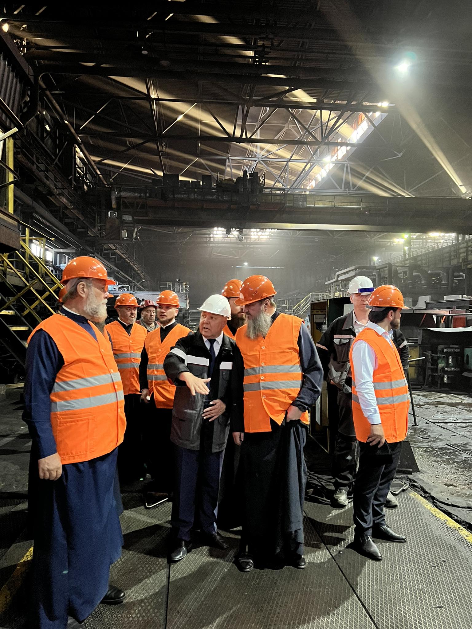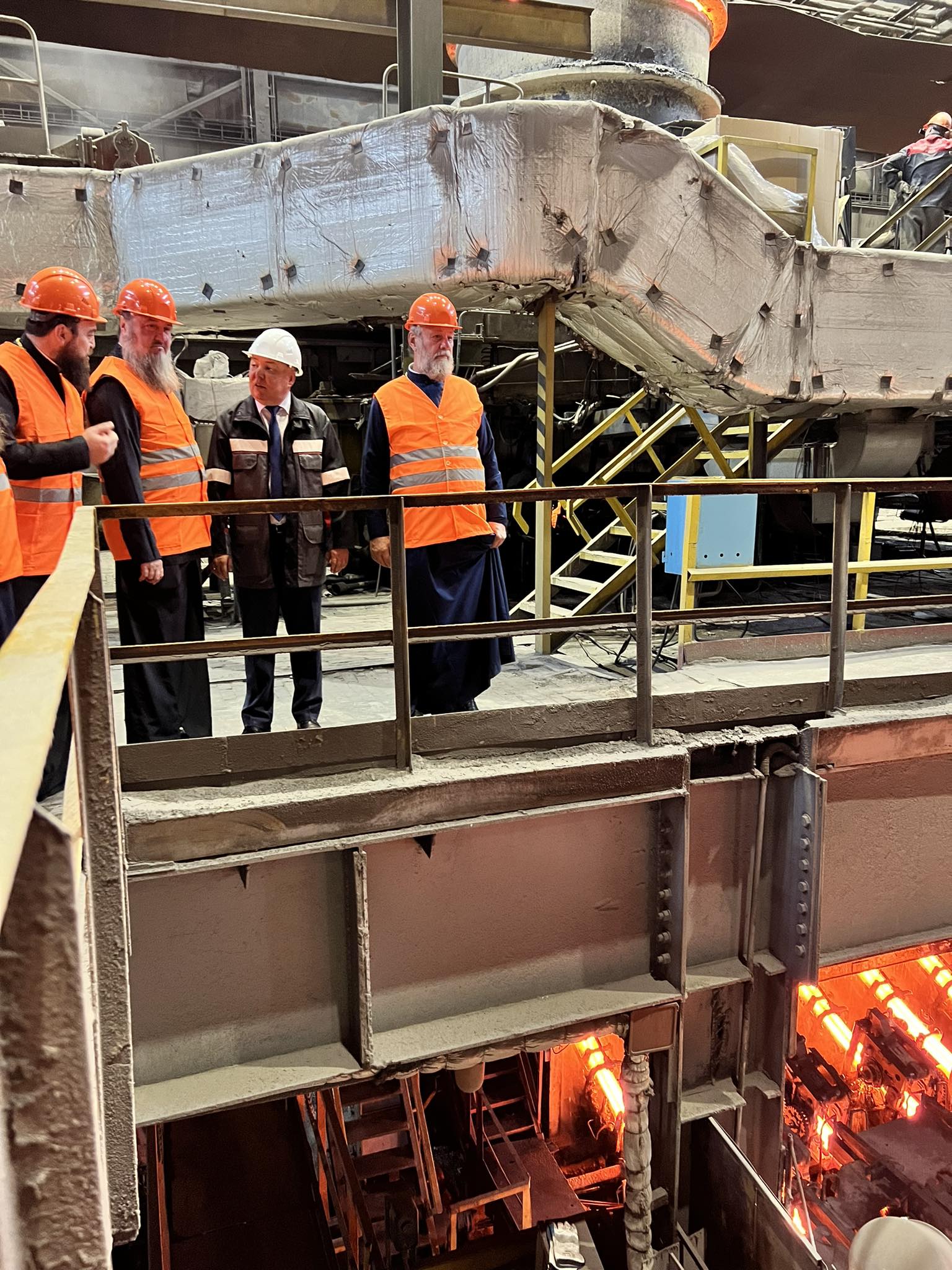 Delegația bisericească a avut, de asemenea, ocazia să vadă cum plăcile de oțel se transformă în țevi armate cu ajutorul preseurilor uriașe și au aflat despre condițiile de muncă și organizarea producției la fabrică.