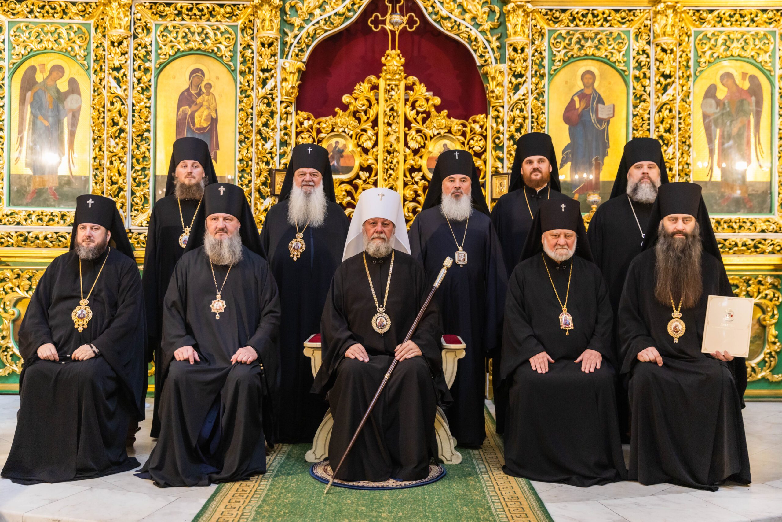 În slujirea sa, Înaltpreasfinția Sa a fost însoțit de: ÎPS Sava, arhiepiscop de Tiraspol și Dubăsari, ÎPS Anatolie, arhiepiscop de Cahul și Comrat, ÎPS Petru, arhiepiscop de Ungheni și Nisporeni, ÎPS Marchel, arhiepiscop de Bălți și Fălești, ÎPS Nicodim, arhiepiscop de Edineț și Briceni, PS Ambrozie, episcop de Bogorodsc, vicar al Exarhatului Patriarhal pentru Europa Occidentală, PS Ioan, episcop de Soroca, vicar mitropolitan și PS Siluan, episcop de Orhei, vicar mitropolitan, stareți de mănăstiri și protopopi din Eparhia Chișinăului.