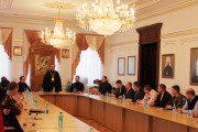 Întrunirea a avut loc în Sala Sinodală și a demarat cu un salut din partea Întâistătătorului, care s-a arătat impresionat de interesul oaspeților pentru viața bisericească din țara noastră, făcând în acest sens o incursiune în istoria Bisericii Ortodoxe din Moldova. Totodată, Înalt Prea Sfinția Sa a subliniat încă o dată năzuința Mitropoliei Chișinăului și a Întregii Moldove de a munci spre binele și propășirea poporului nostru prin prisma învățăturii și a valorilor Creștin-Ortodoxe.