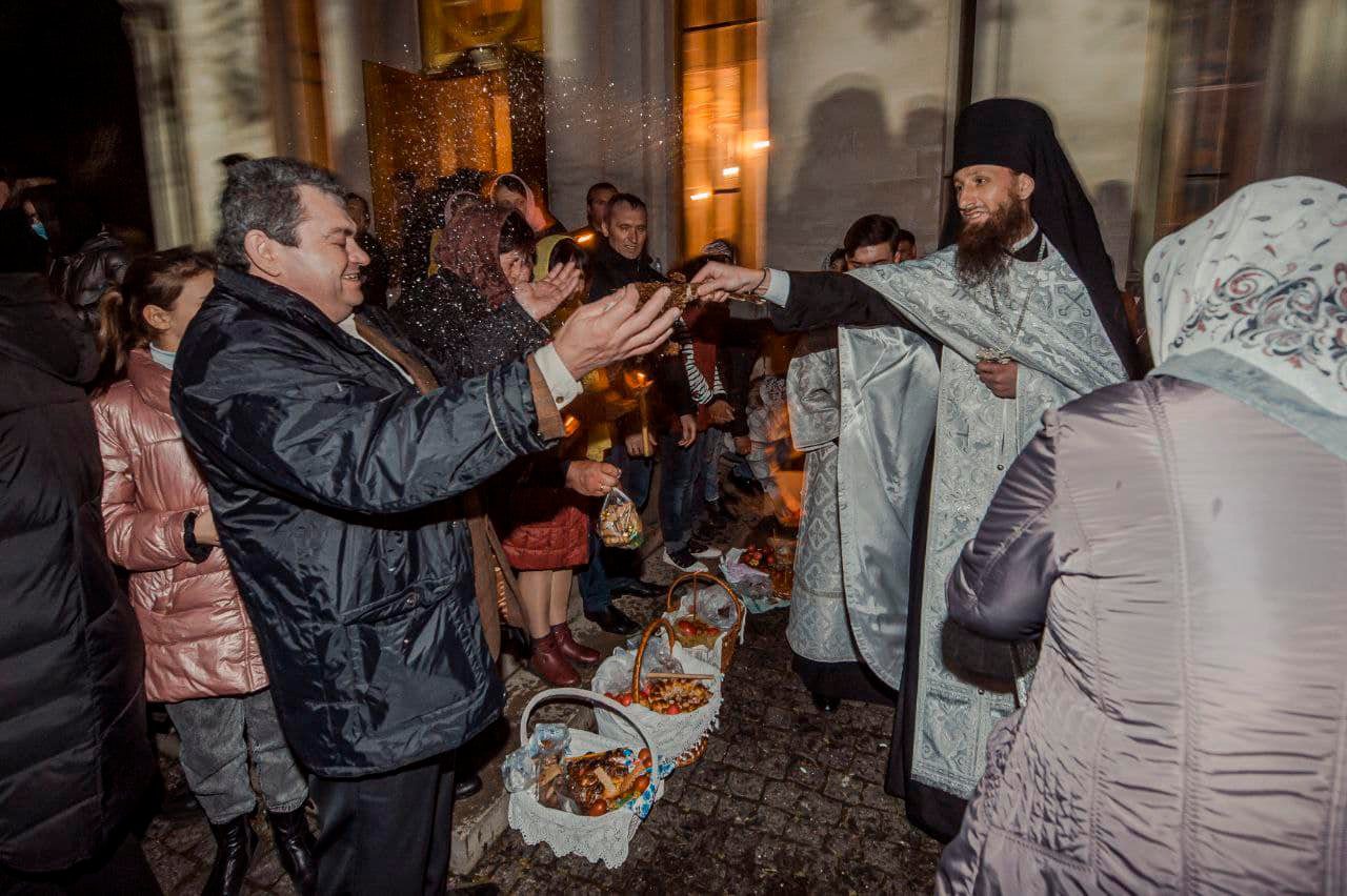După Dumnezeiasca Liturghie, Ierarhul Orheiului i-a felicitat pe toți cei prezenți în număr mare la Biserică, cu Sărbătoarea Învierii, menționând că sărbătoarea Învierii trebuie să devină învierea tuturor celor care poartă numele de creștini. „Luminatul Praznic al Învierii Domnului nostru Iisus Hristos să aducă în sufletele noastre, bucuria și Lumina cea neînserată, dăruindu-ne pace și bucurie sfântă, spre deplina împărtășire din iubirea Lui Dumnezeu cea veșnică din această viață și care să ne însoțească pentru veșnicie,” a menționat Preasfinția Sa.